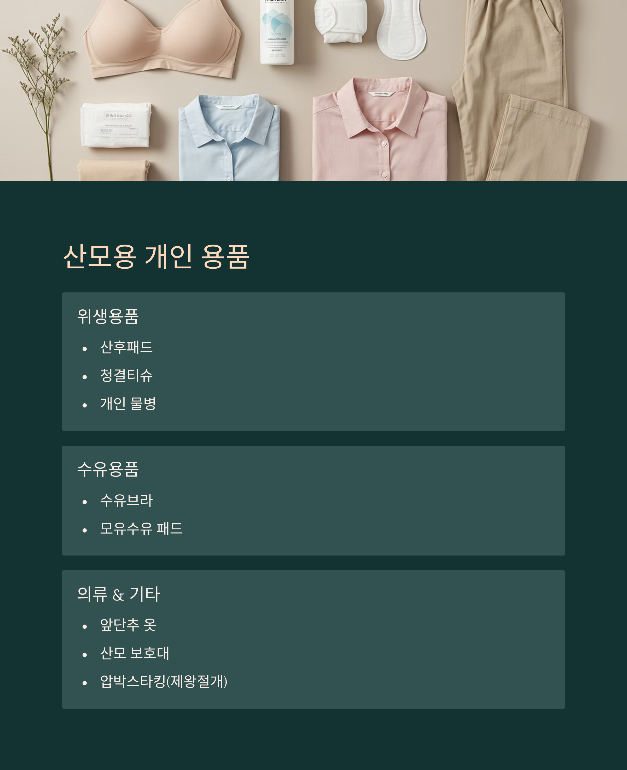산모용 개인 용품 - 산후 회복을 위한 준비 리스트