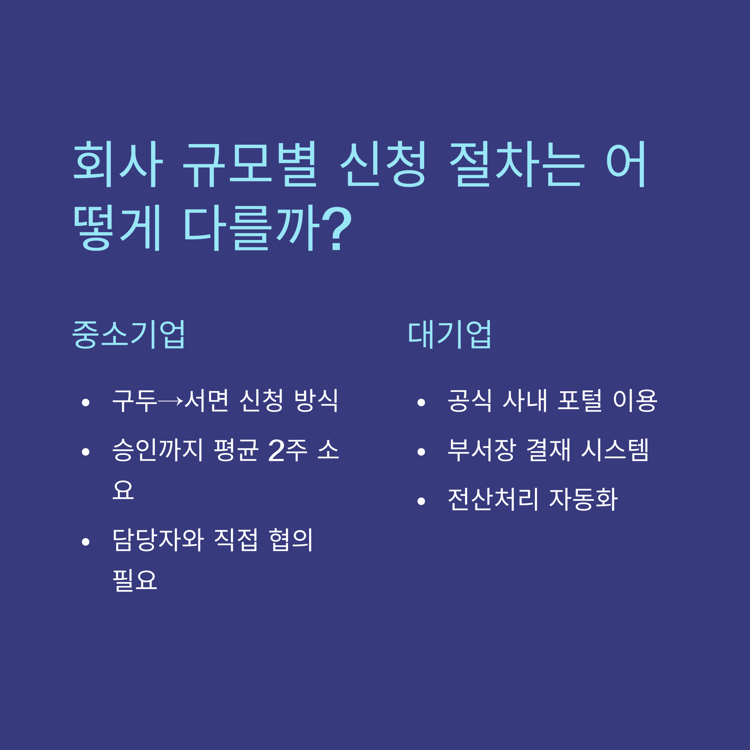 - 대기업: 사내 인트라넷 시스템을 통한 신청 절차 존재
