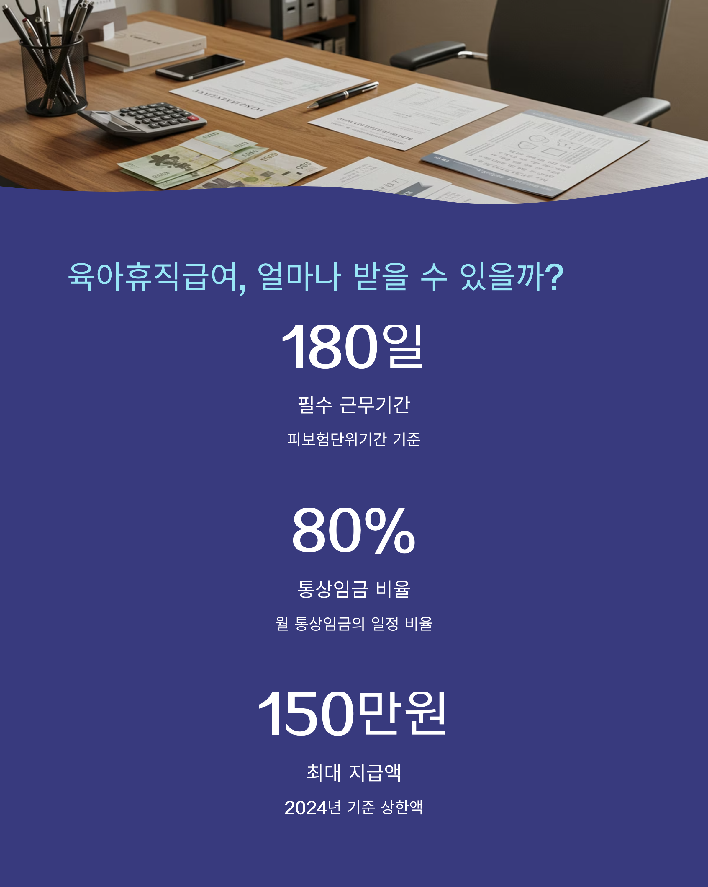 - 육아휴직 시작일 기준 180일 이상 고용보험에 가입되어 있어야 함
