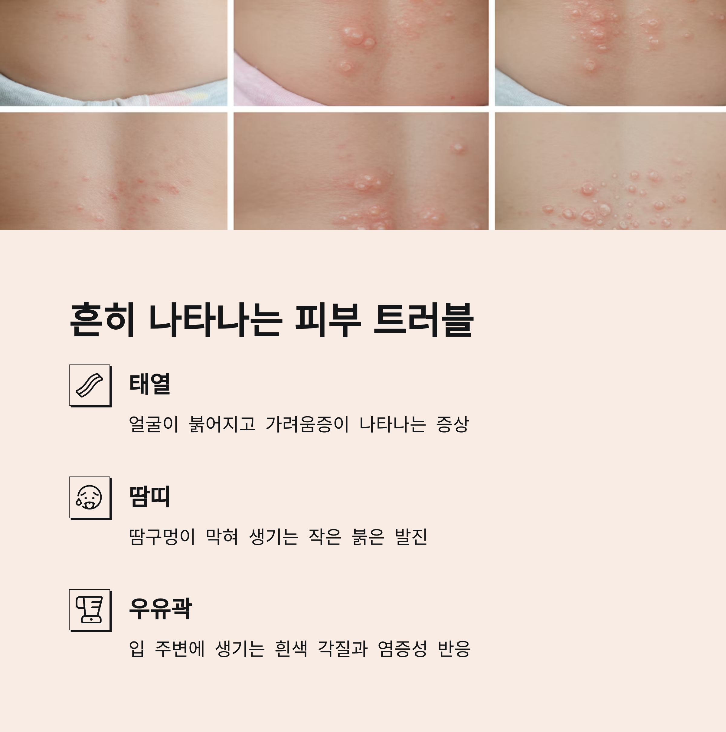 흔한 트러블 유형 - 태열, 땀띠, 우유곽 등
