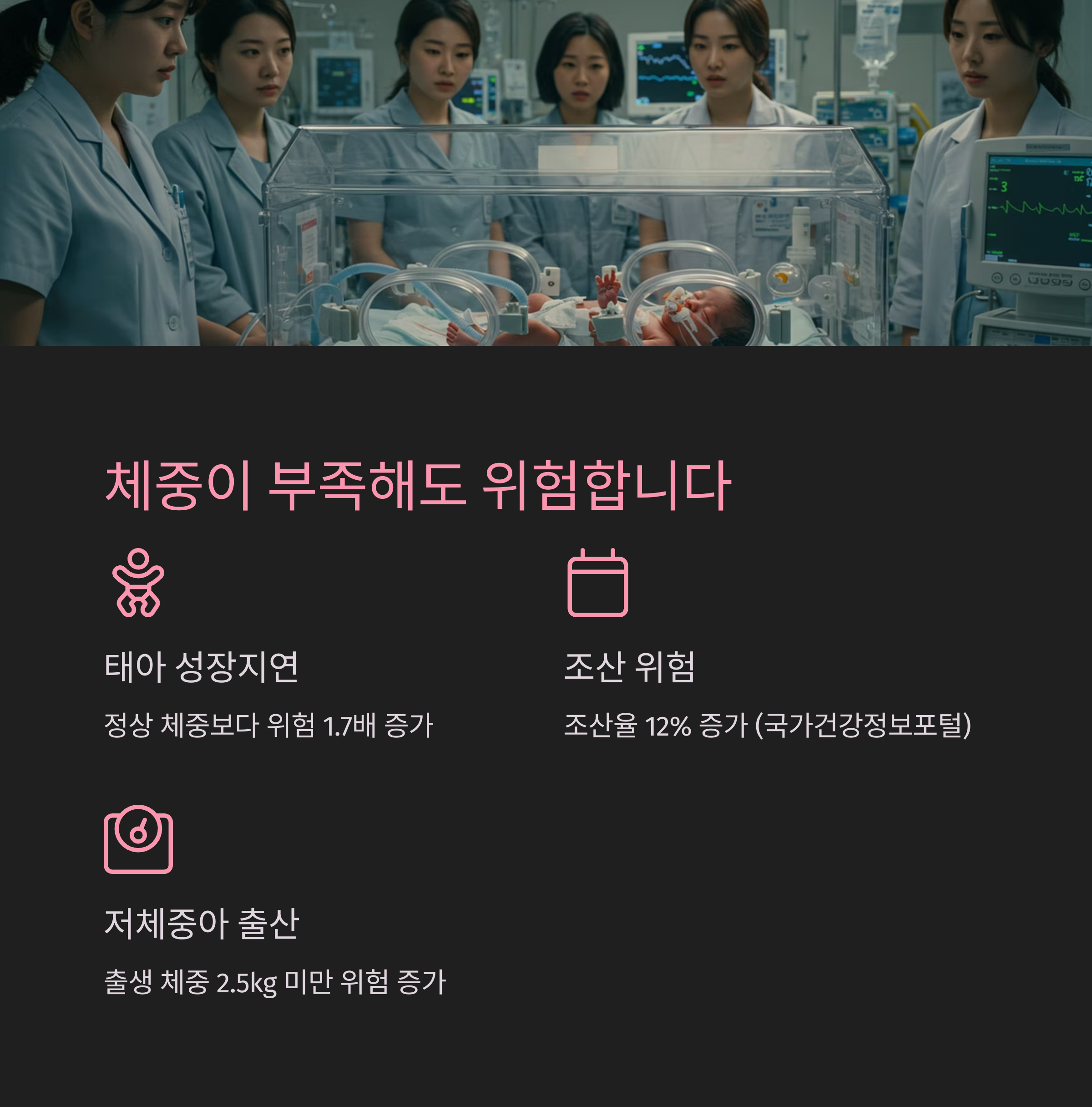 체중 미달일 때 문제점 - 태아 성장 지연과 조산 가능성