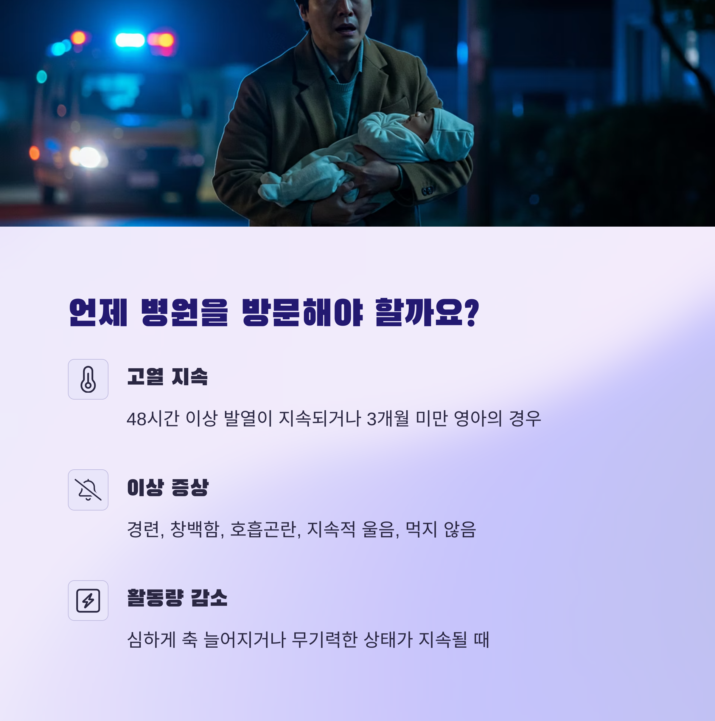 다음과 같은 경우는 즉각적인 병원 방문이 필요합니다: