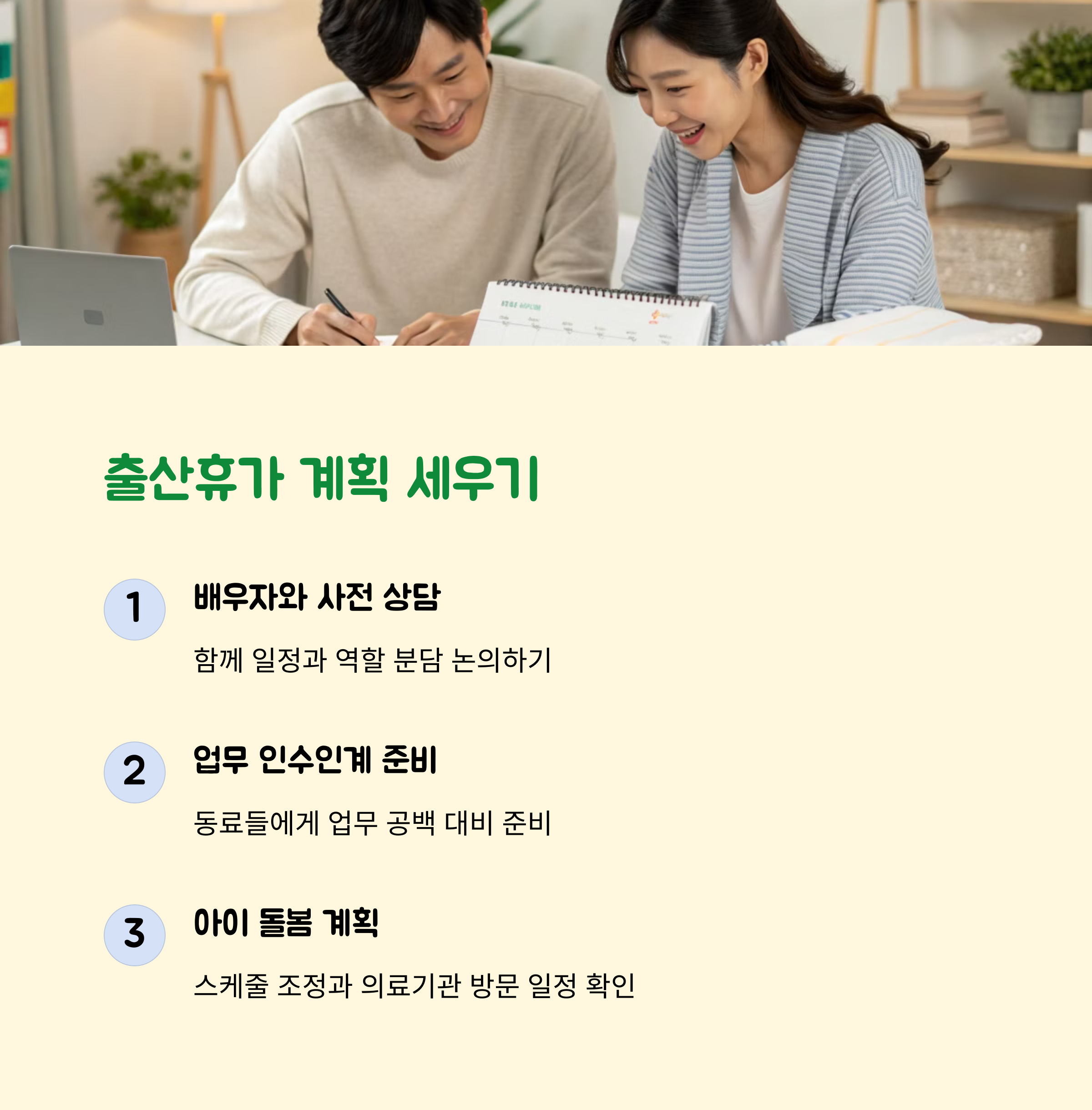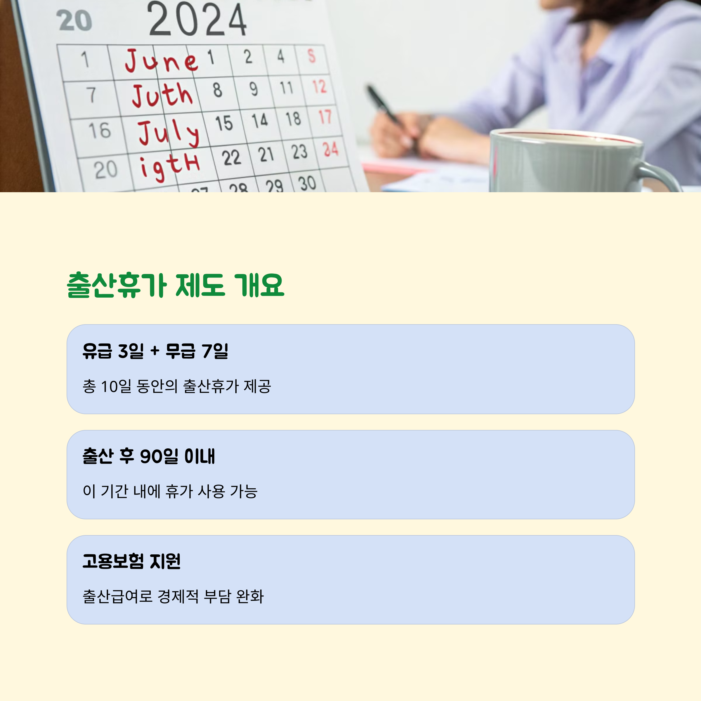 | 출산휴가 기간 | 신청 방법 | 급여 지원 |