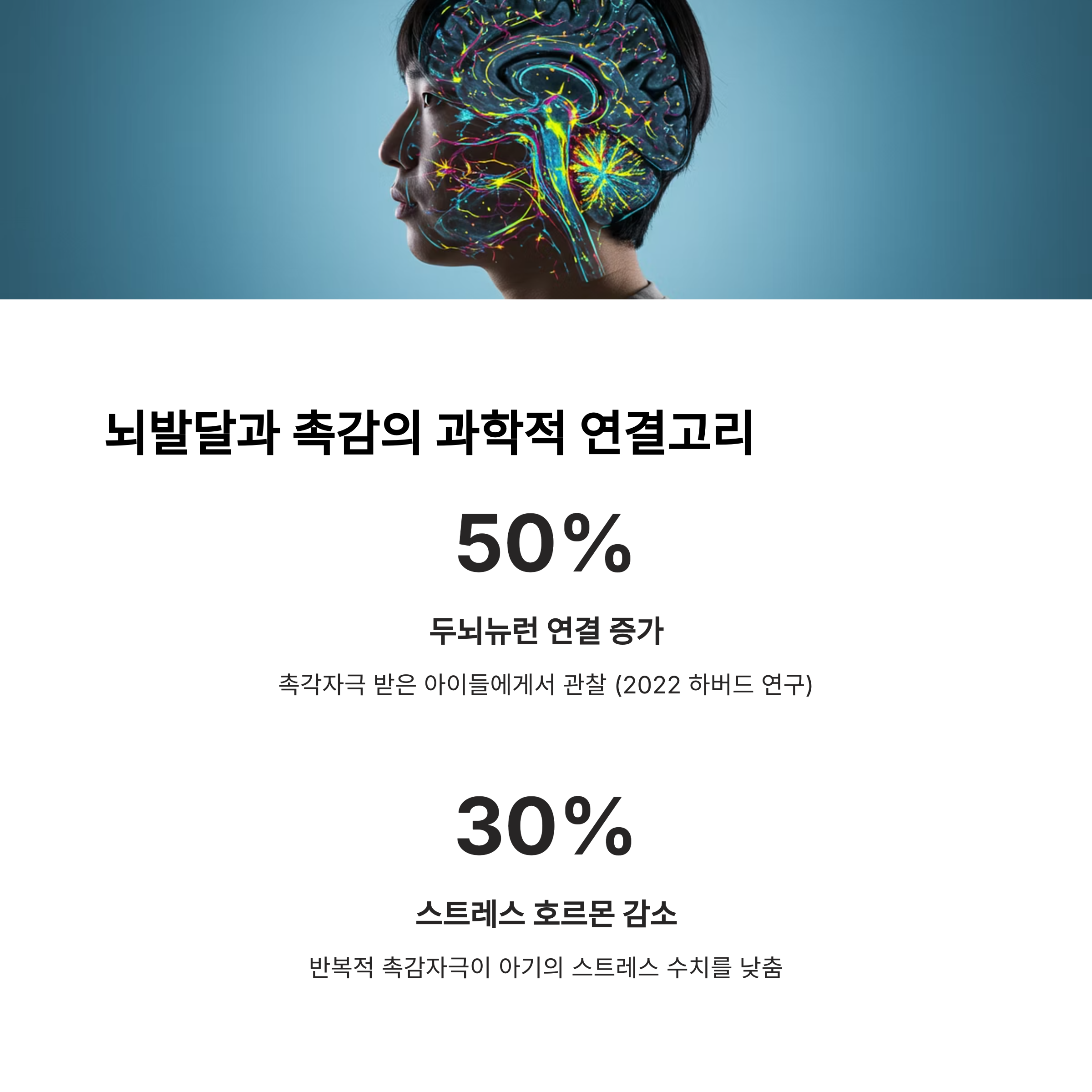 실제로 촉감 자극을 많이 받은 아기가 인지 발달이 빠르다는 연구 결과도 있습니다