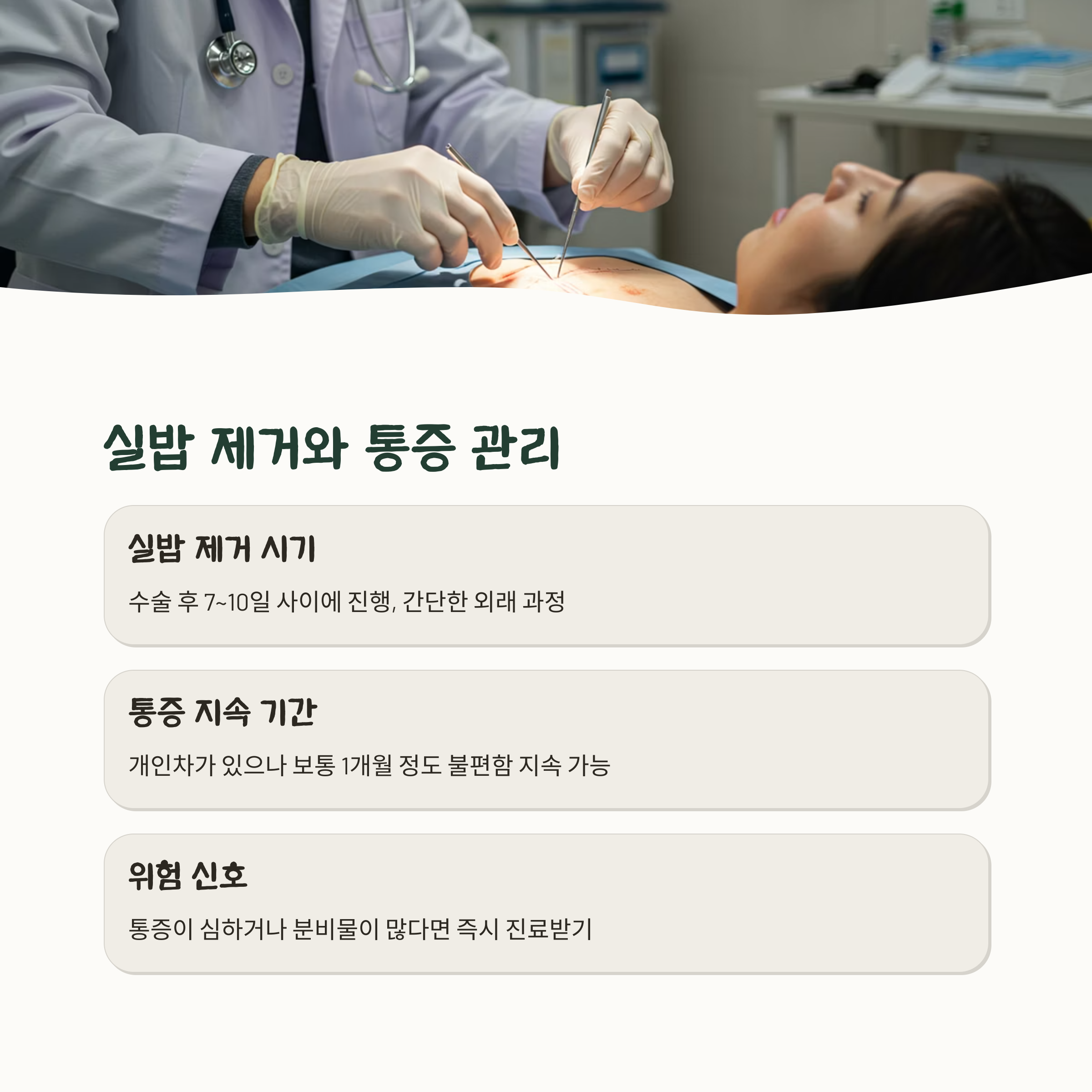 수술 후 7~10일 사이에 실밥 제거가 이뤄집니다.