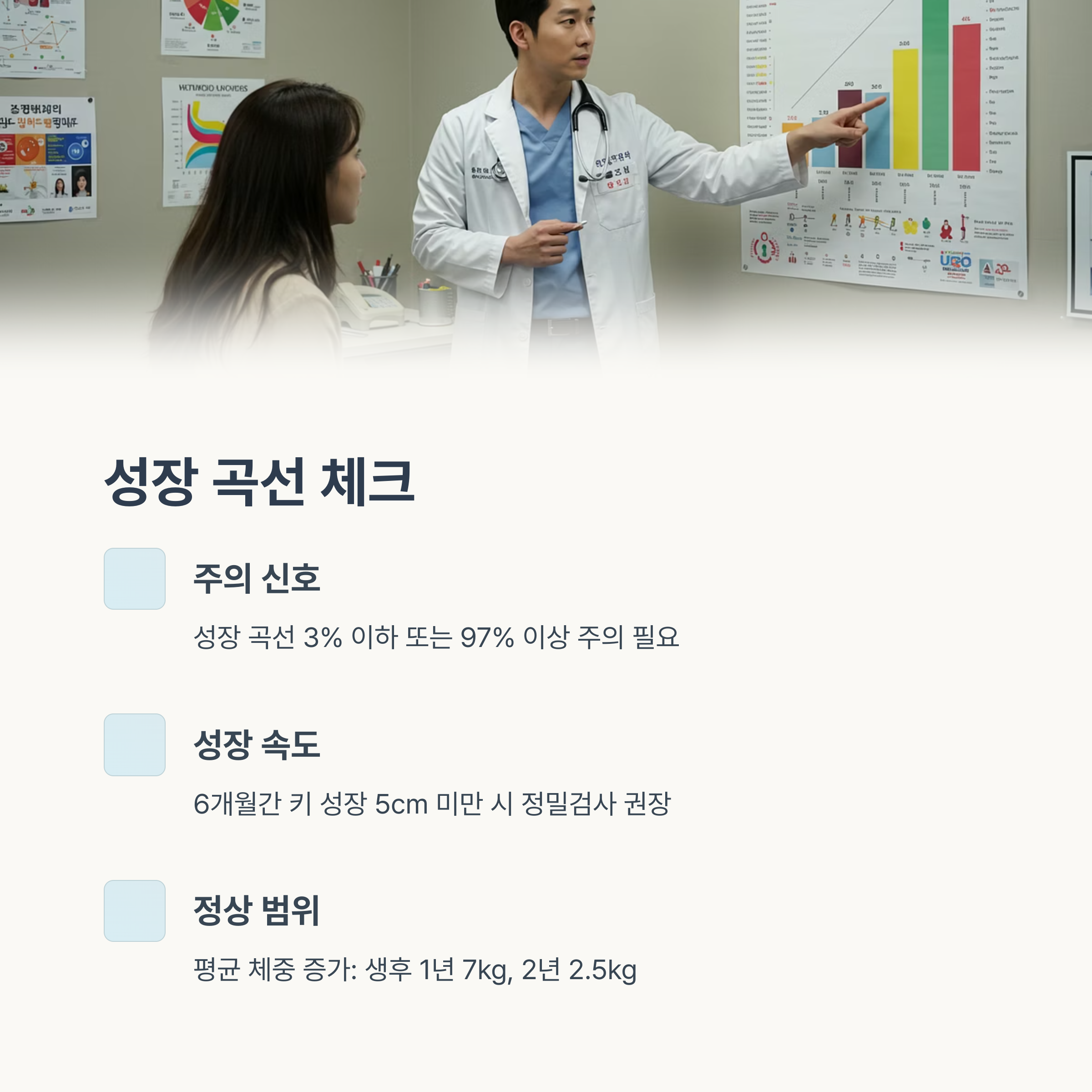 성장뿐만 아니라 양육 환경 평가와 보호자 상담도 포함됩니다.