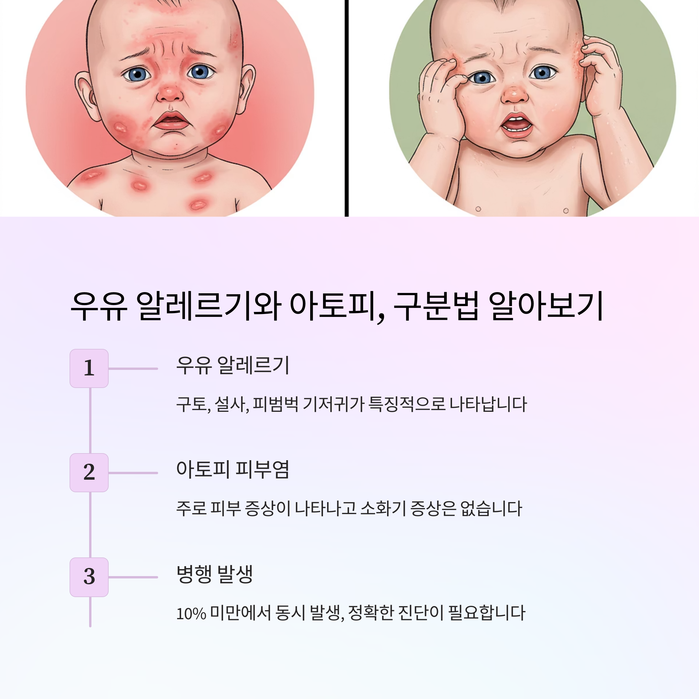 하지만 우유 알레르기는 주로 설사, 혈변, 복통, 구토 등 소화기 증상을 동반하고