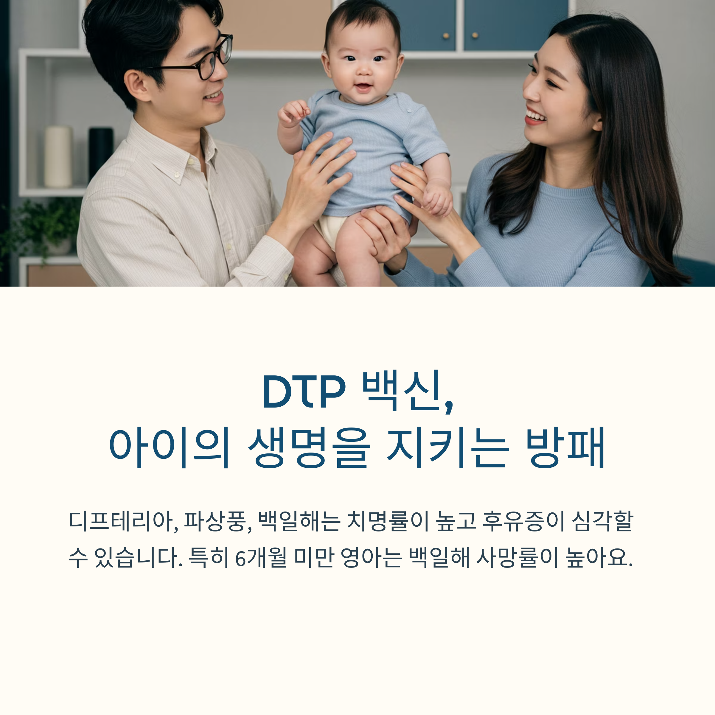 DTP 백신은 디프테리아(Diphtheria), 파상풍(Tetanus), 백일해(Pertussis)를 예방하는 3가 혼합 백신으로,