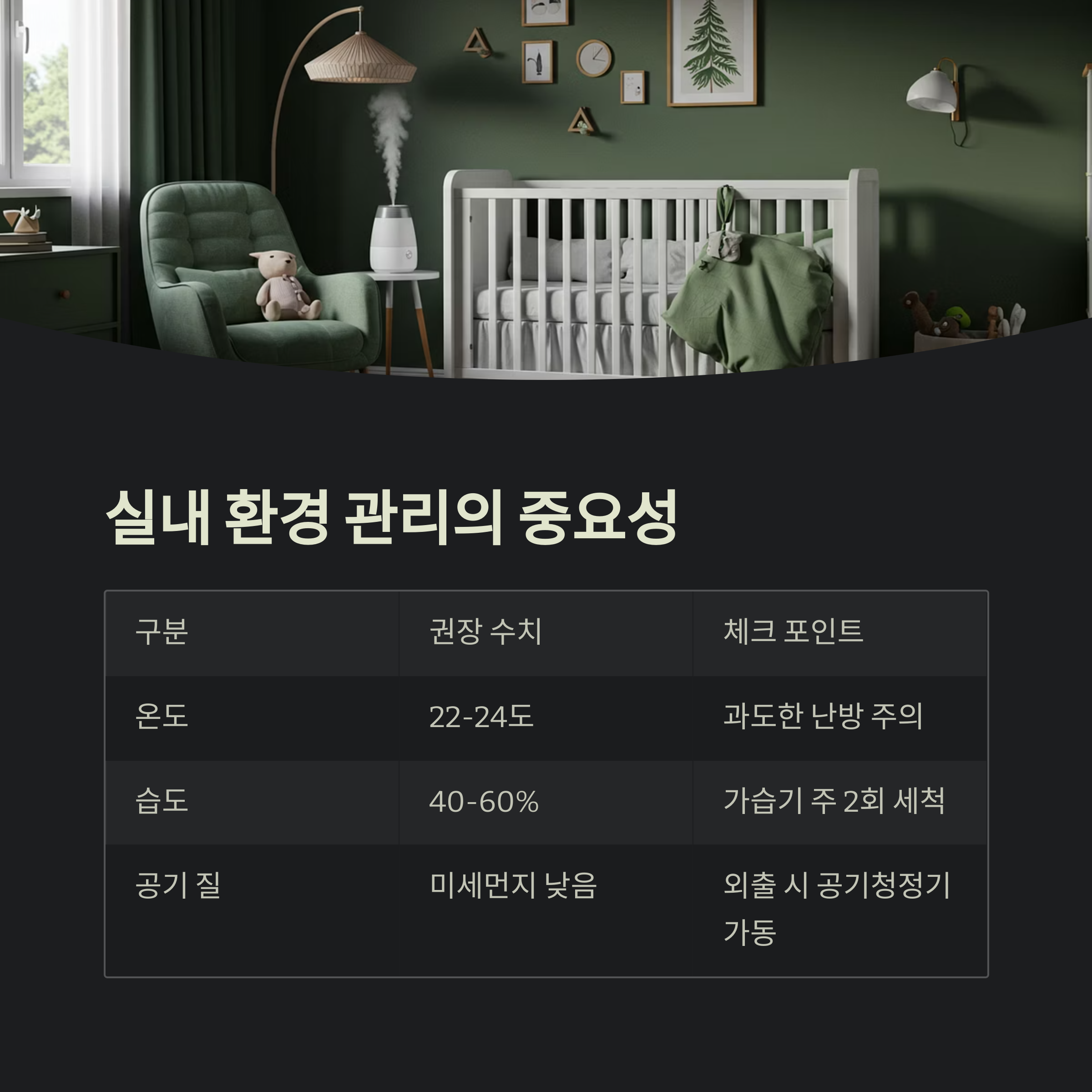 | 습도 | 40~60% | 가습기 주 2회 세척 |