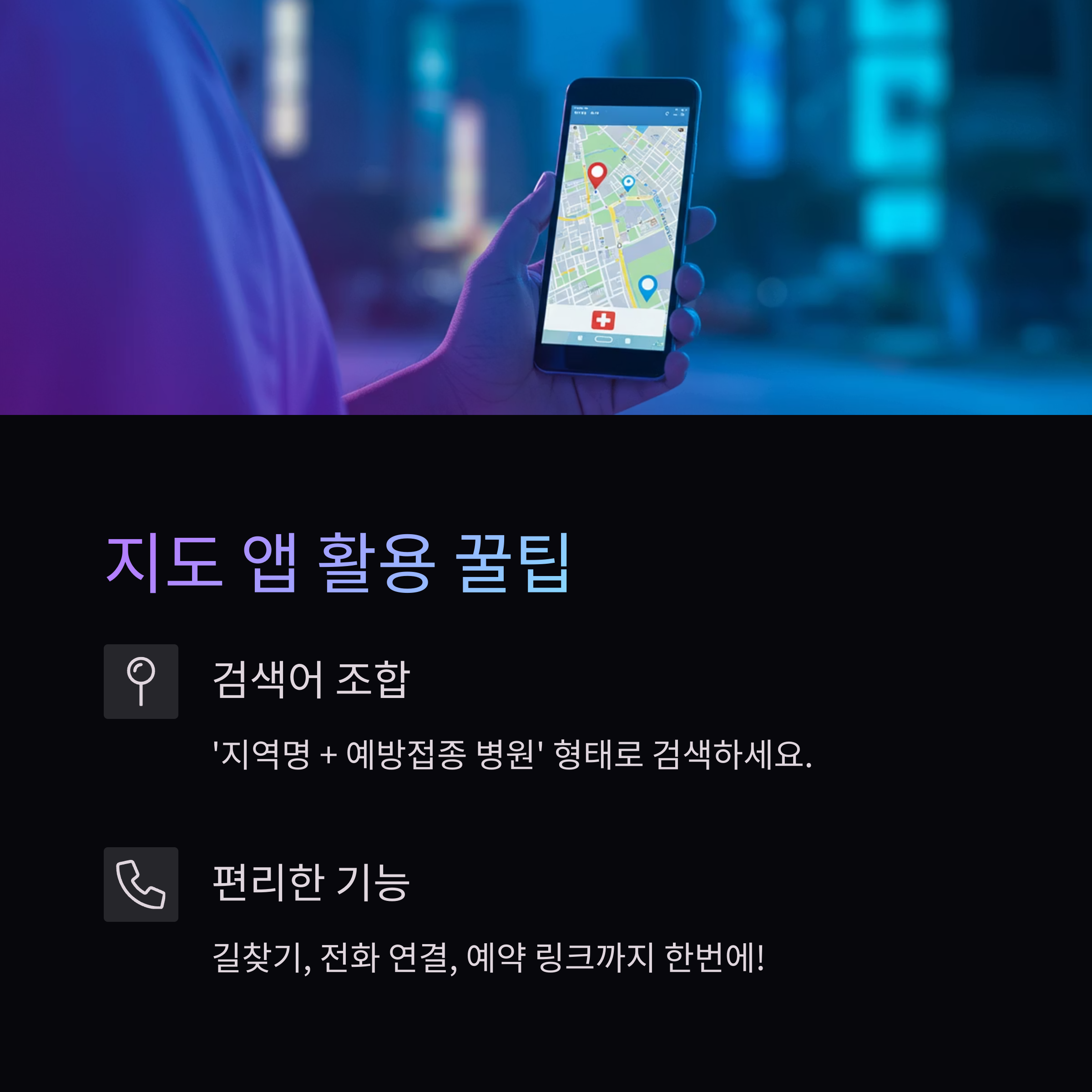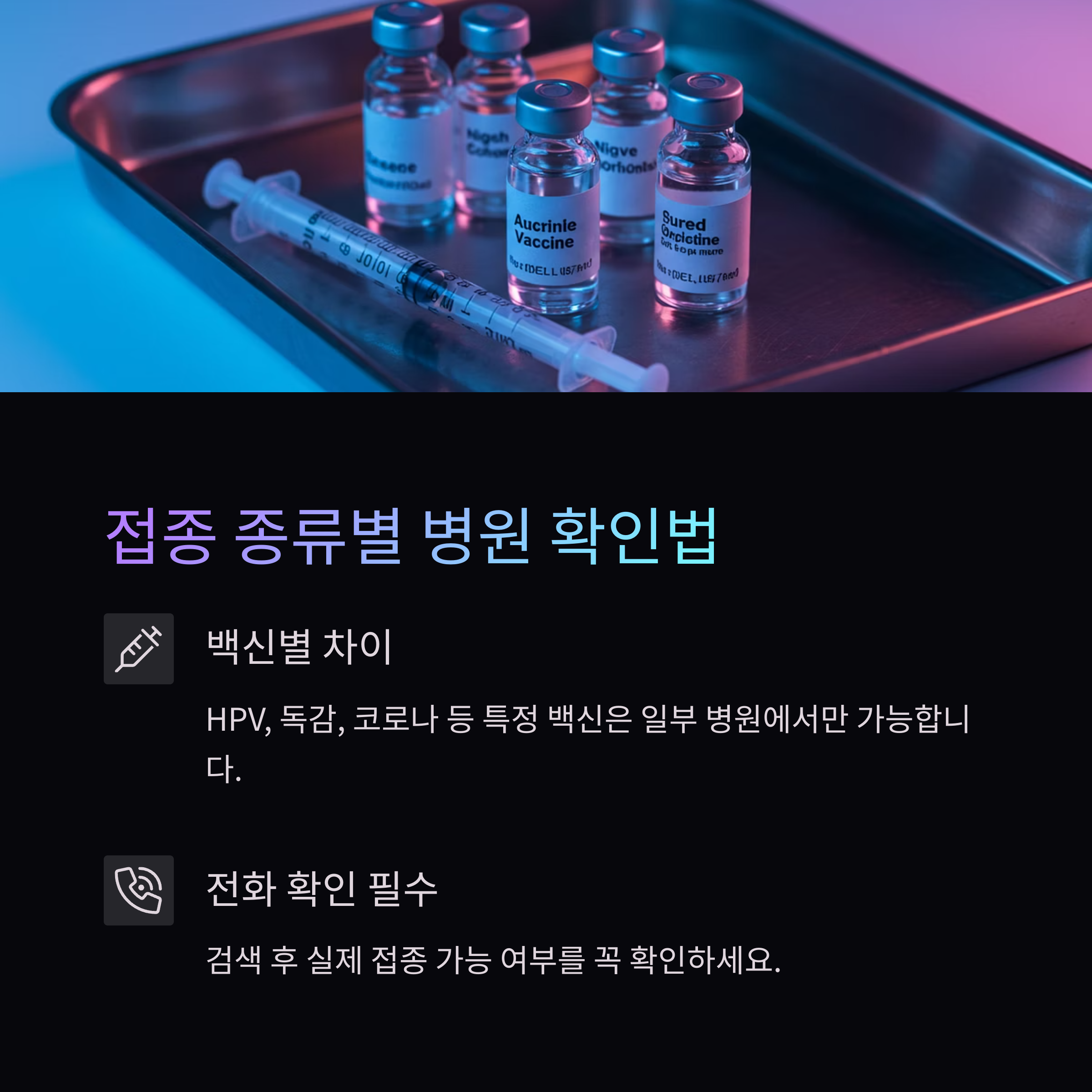 이 세 가지를 결합하면 헛걸음 없이 빠르게 예방접종 병원을 찾을 수 있습니다.