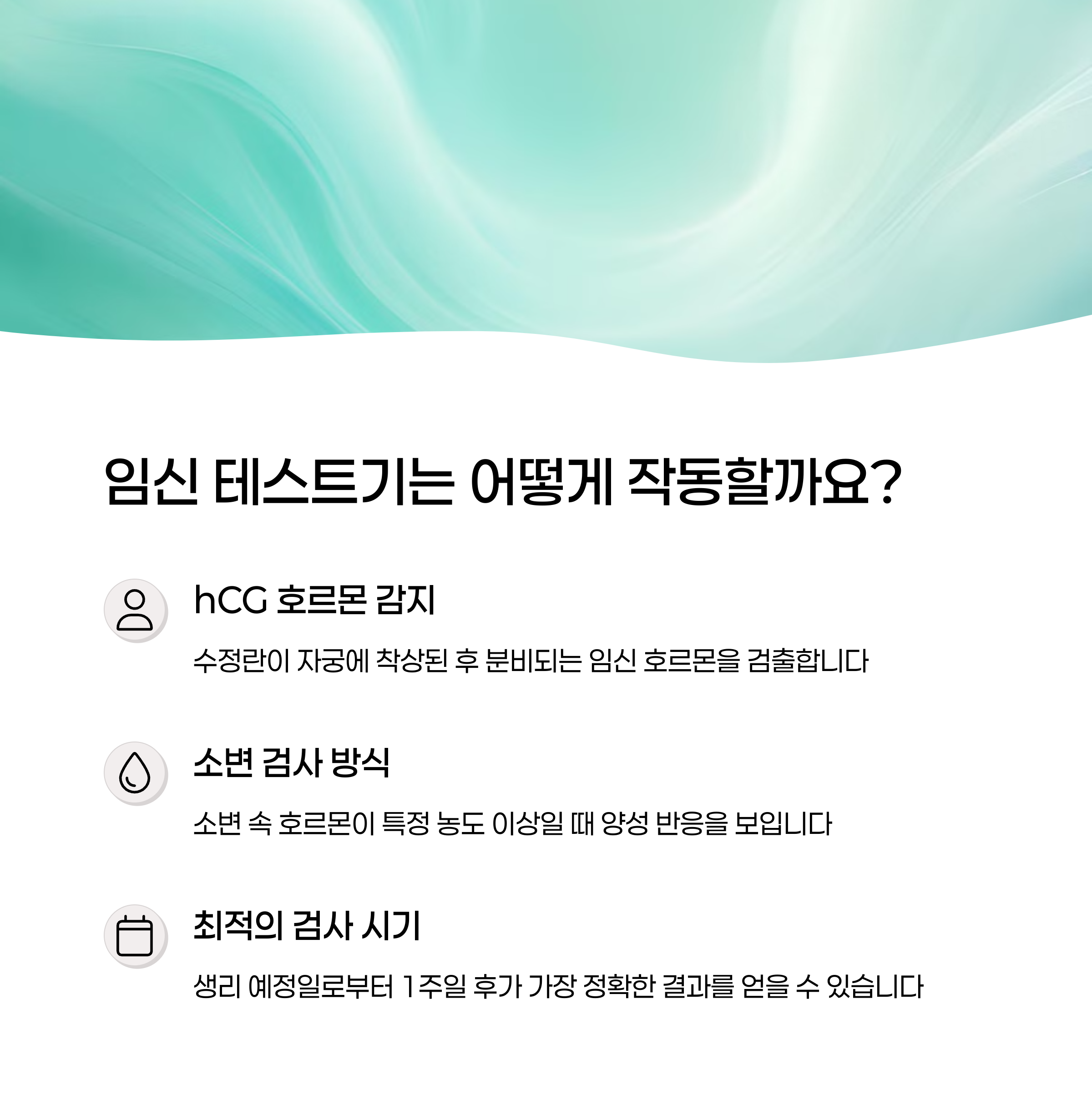 | 임신 테스트기 원리 | 소변 속 hCG 호르몬을 감지하여 결과를 표시해요. |