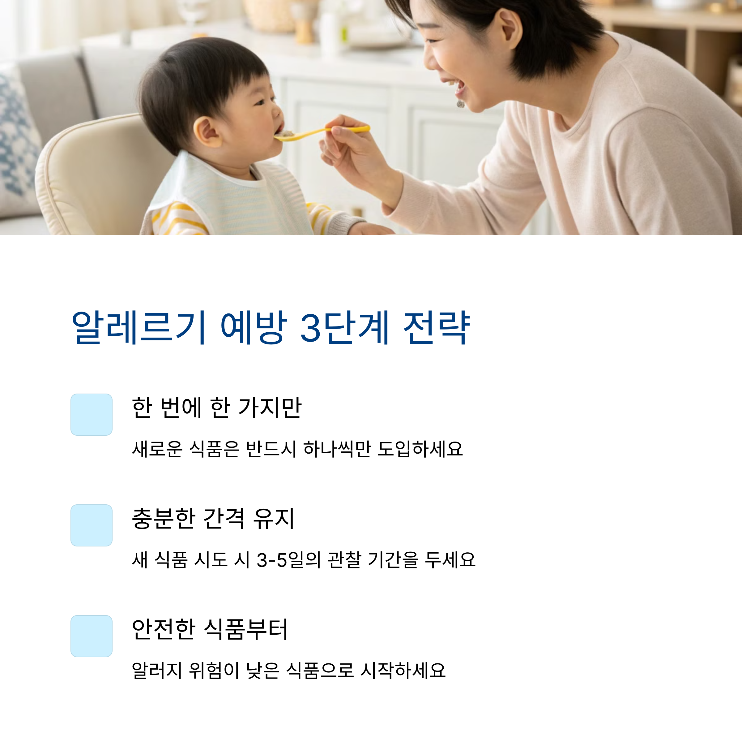 아이의 첫 이유식은 단순한 식사가 아닌, 성장의 첫 걸음입니다. 알러지 반응을 체크하며 조심스럽게 나아가는 과정은 우리 아이의 건강을 지키기 위한 중요한 준비이기도 합니다. 빠르게 많은 것을 시도하기보다는, 천천히 하나씩 확인하며 아이에게 맞는 안전한 식단을 만들어가는 것이 바람직합니다. 오늘 알려드린 알러지 체크법을 바탕으로 더 이상 두렵지 않고, 즐거운 이유식 준비를 시작해 보세요.