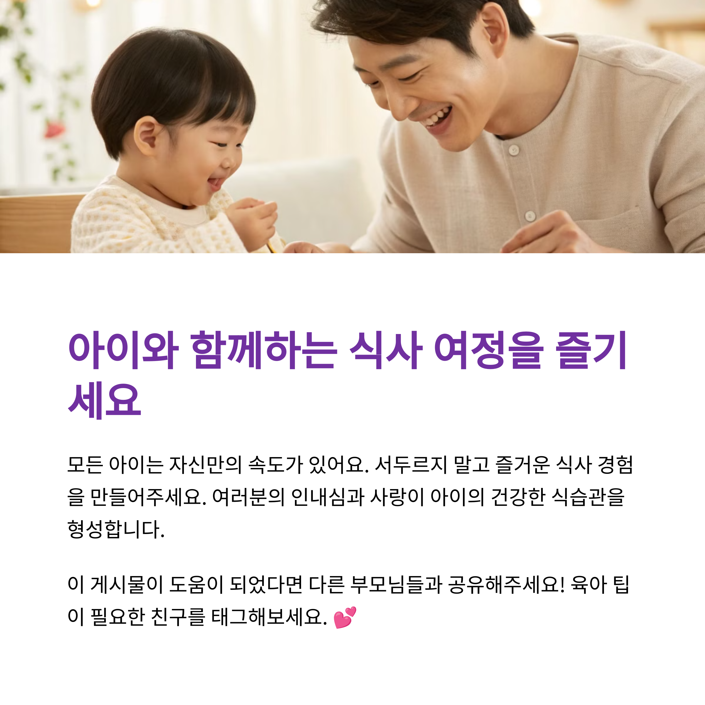 유아식으로 전환하는 과정은 단순한 식단 변경이 아닌, 아이의 자립성과 식습관을 키워주는 중요한 성장의 전환점입니다. 너무 조급해하지 말고, 아이의 반응과 변화를 유심히 살펴보면서 유연하게 접근해보세요. 이 글을 통해 조금이나마 여러분의 육아 여정에 도움이 되셨길 바랍니다. 매일매일 아이와 함께 건강한 식사를 즐기시길 진심으로 응원합니다!