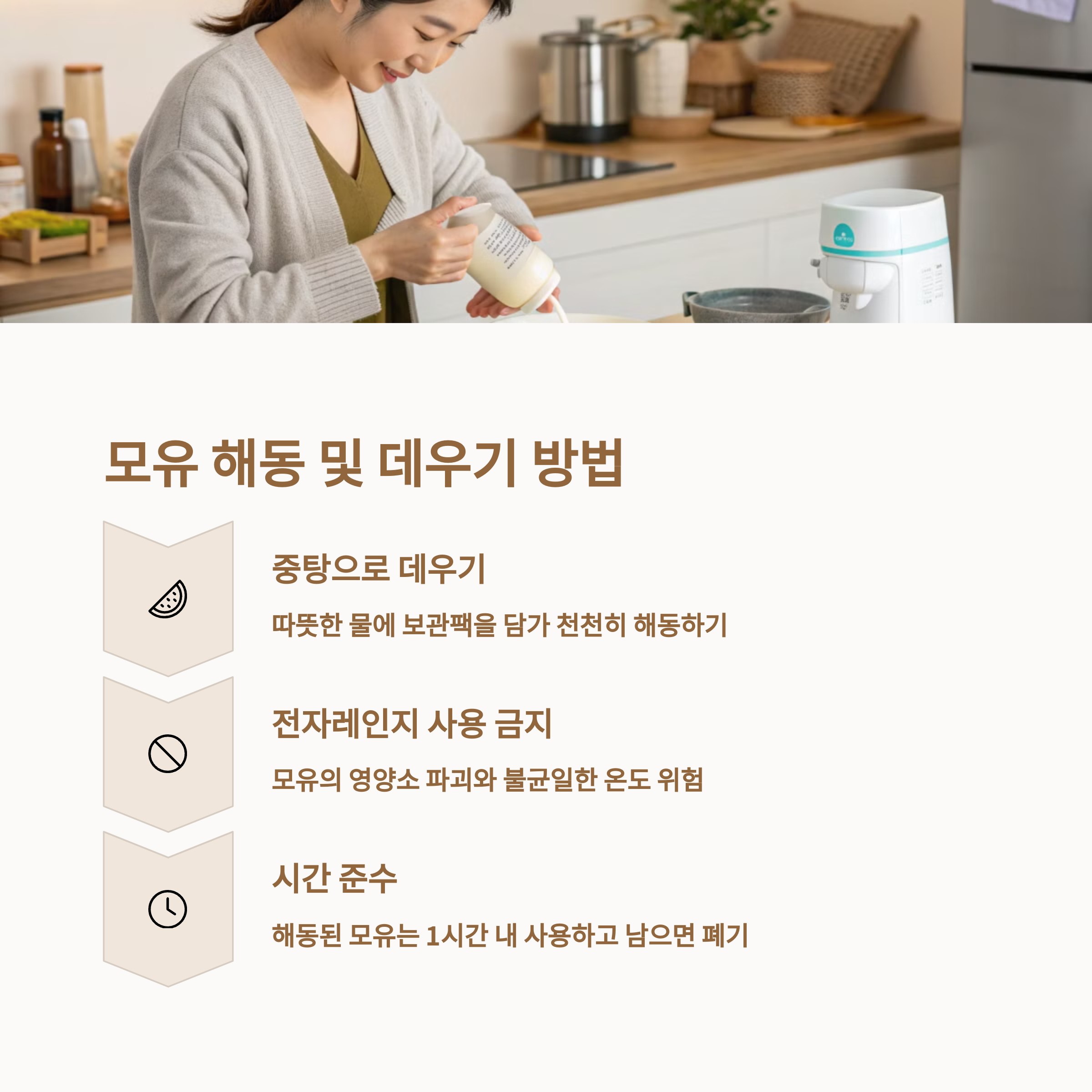 | 꾸준한 시간 유지가 유축 성공의 핵심입니다. | 해동 후 재냉동은 절대 금지입니다. | 유축 중 몸을 지나치게 움직이지 마세요. |