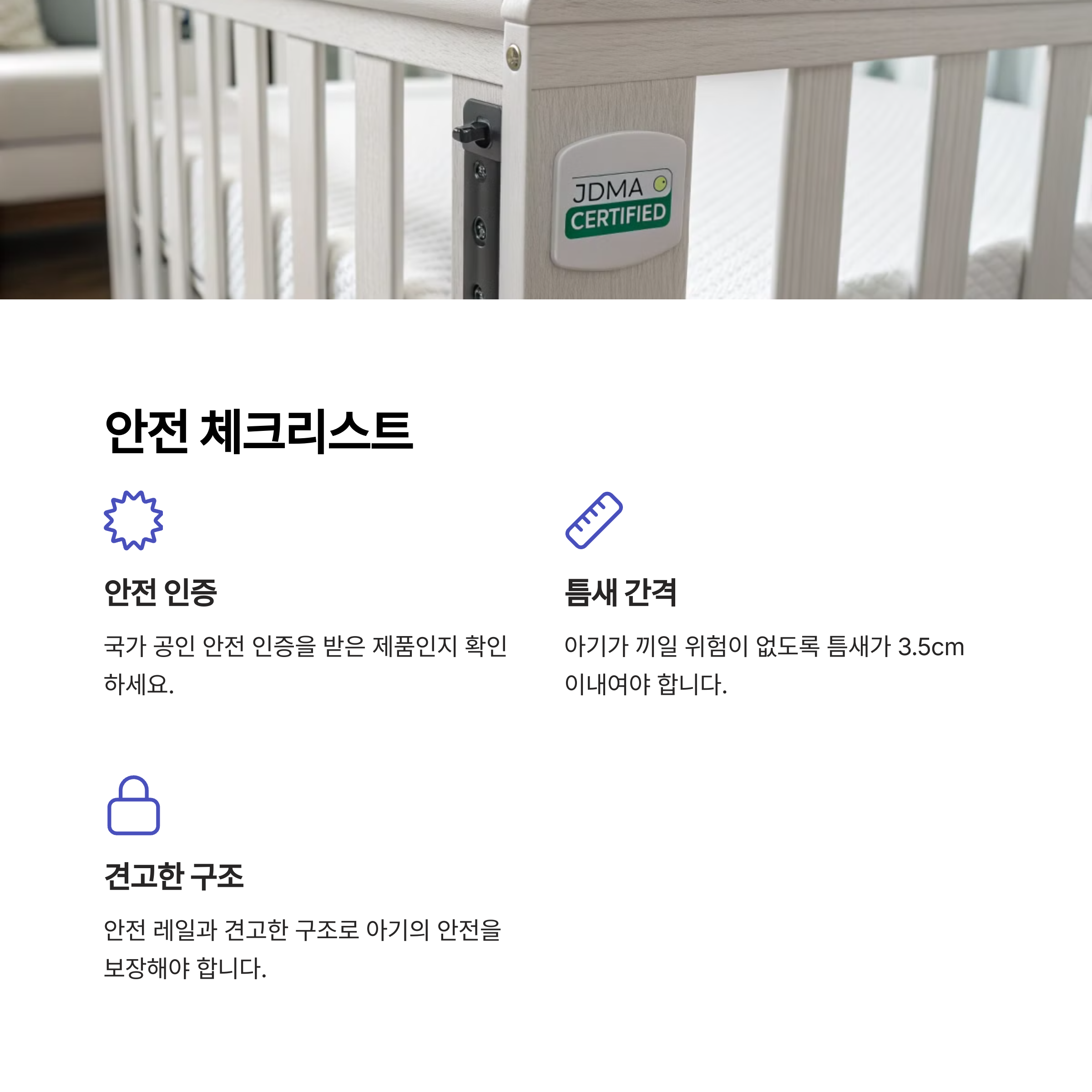 | 아기침대 구매 기준 | 안전성, 내구성, 소재 등 핵심 요소를 꼼꼼히 고려해야 해요 |