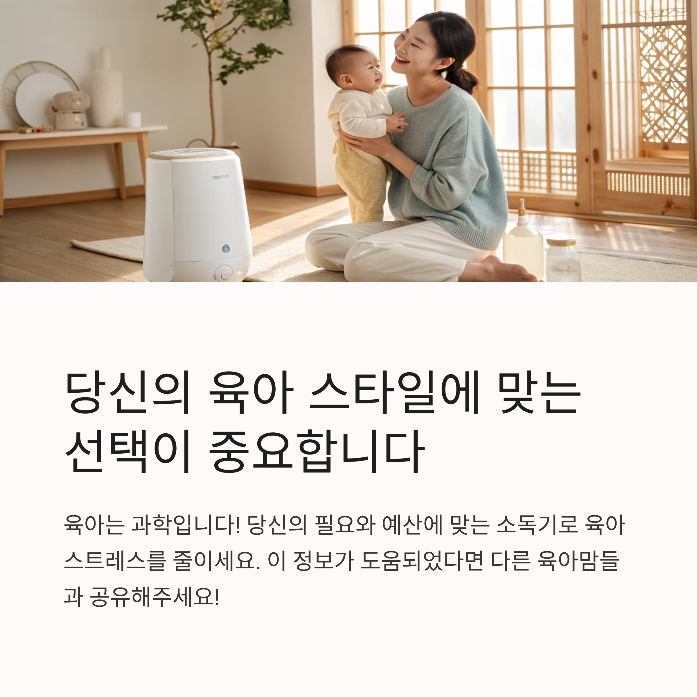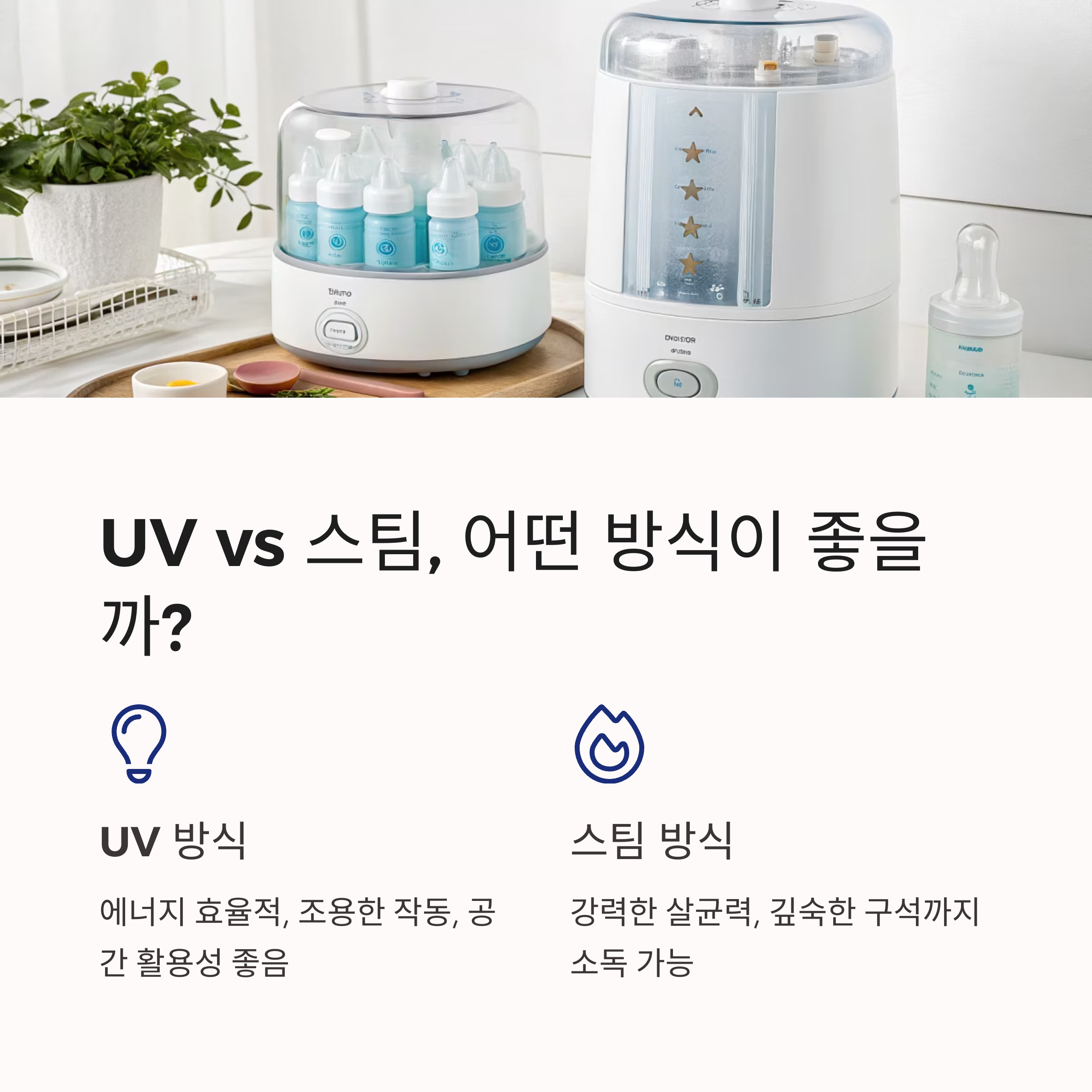 | 신생아기 위생 강화에 도움 | UV램프 관리 필요, 공간 협소 시 불편 | 제품 방식(스팀/UV) 이해 후 선택 |