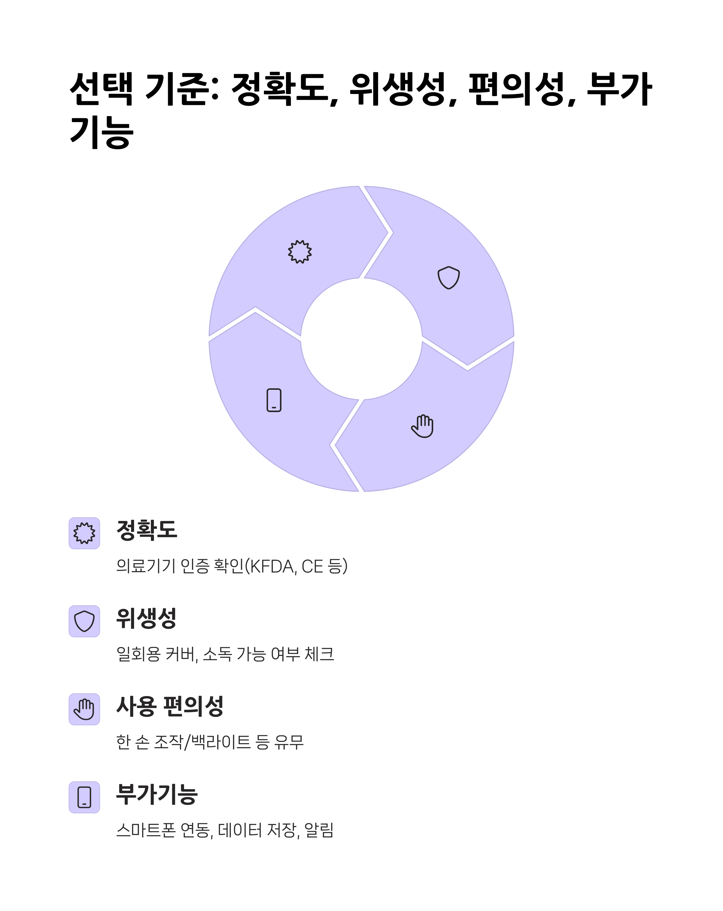 | 선택 기준 | 정확도, 사용 편의성, 위생성, 측정 시간 등이 핵심 |