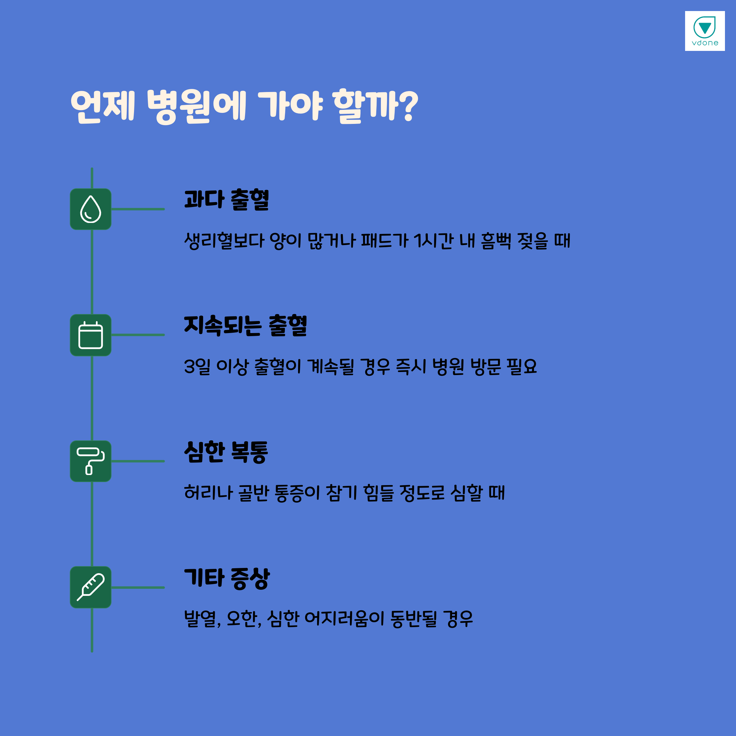 | 주의해야 할 신호 | 출혈, 심한 복통, 갑작스러운 증상 변화 등 |