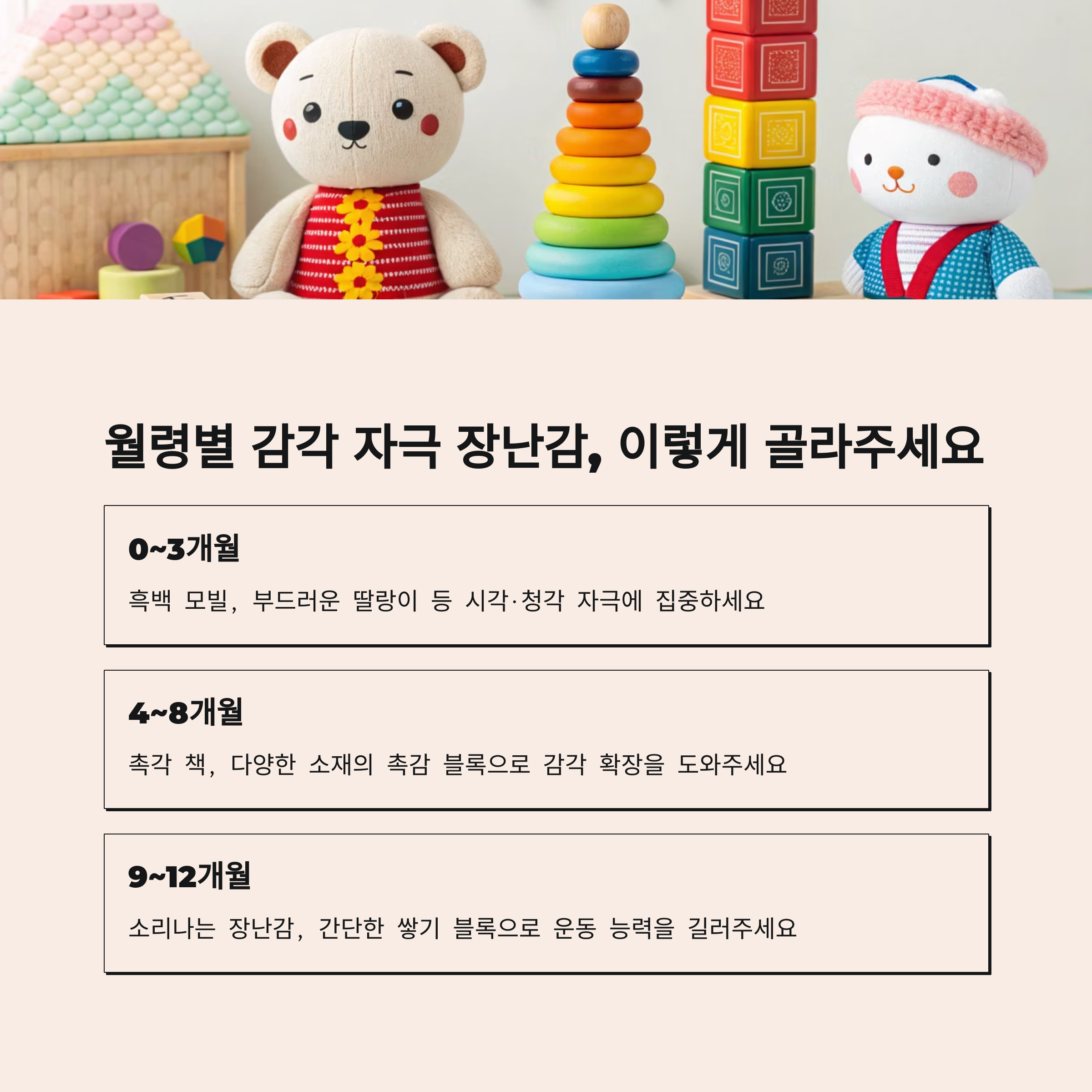| 월령별 자극 | 아기 발달 단계에 맞춘 장난감은 효과적인 자극을 줍니다. |