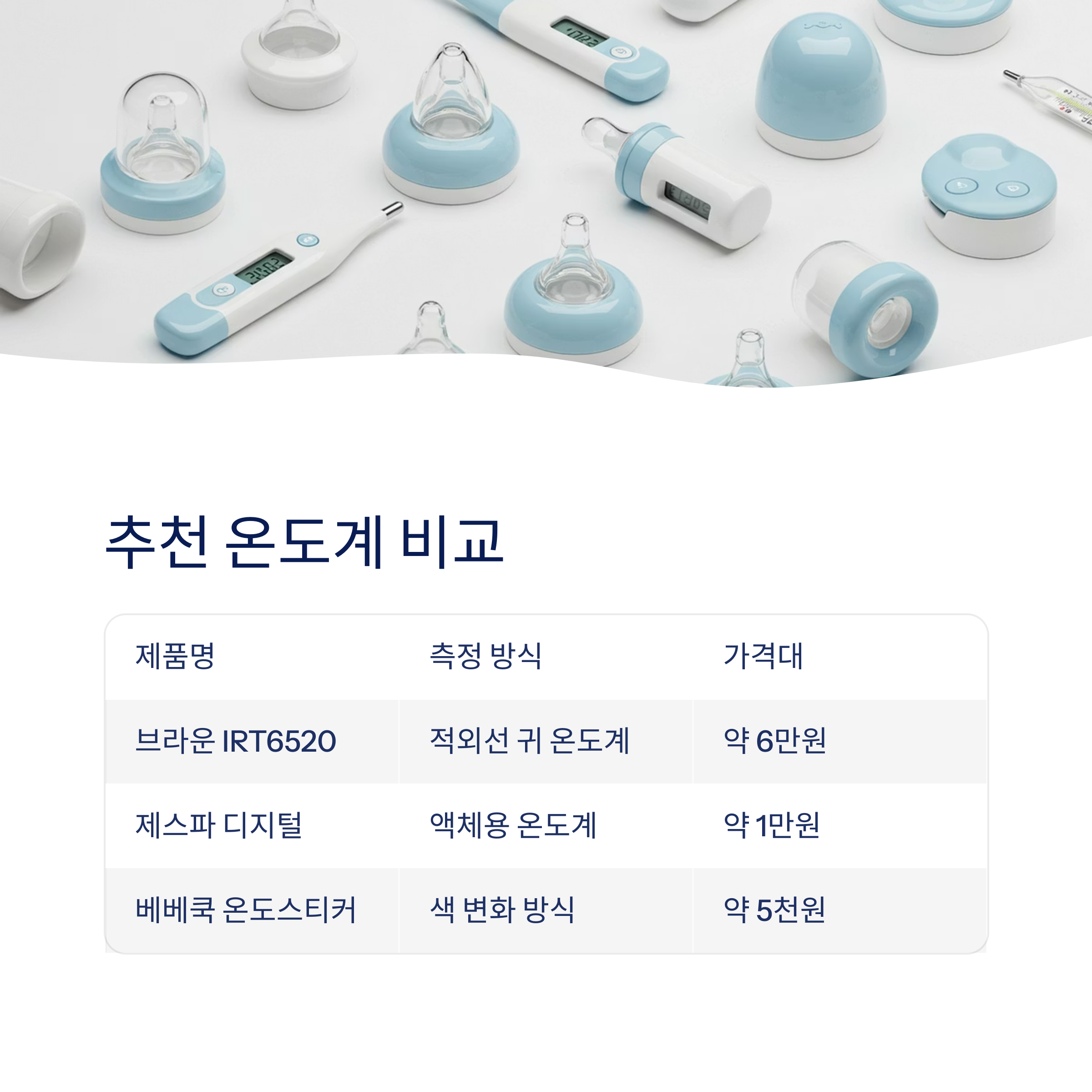 | 베베쿡 온도스티커 | 색 변화 방식 | 젖병에 붙이는 간편함 | 약 5천 원 |