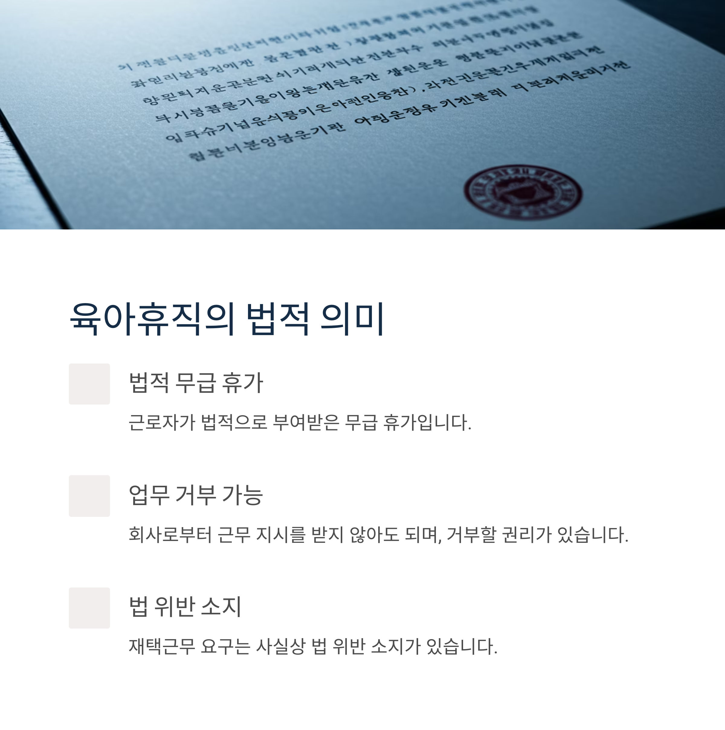 육아휴직인데 재택근무 요청받았어요. 이거 법적으로 괜찮은가요?