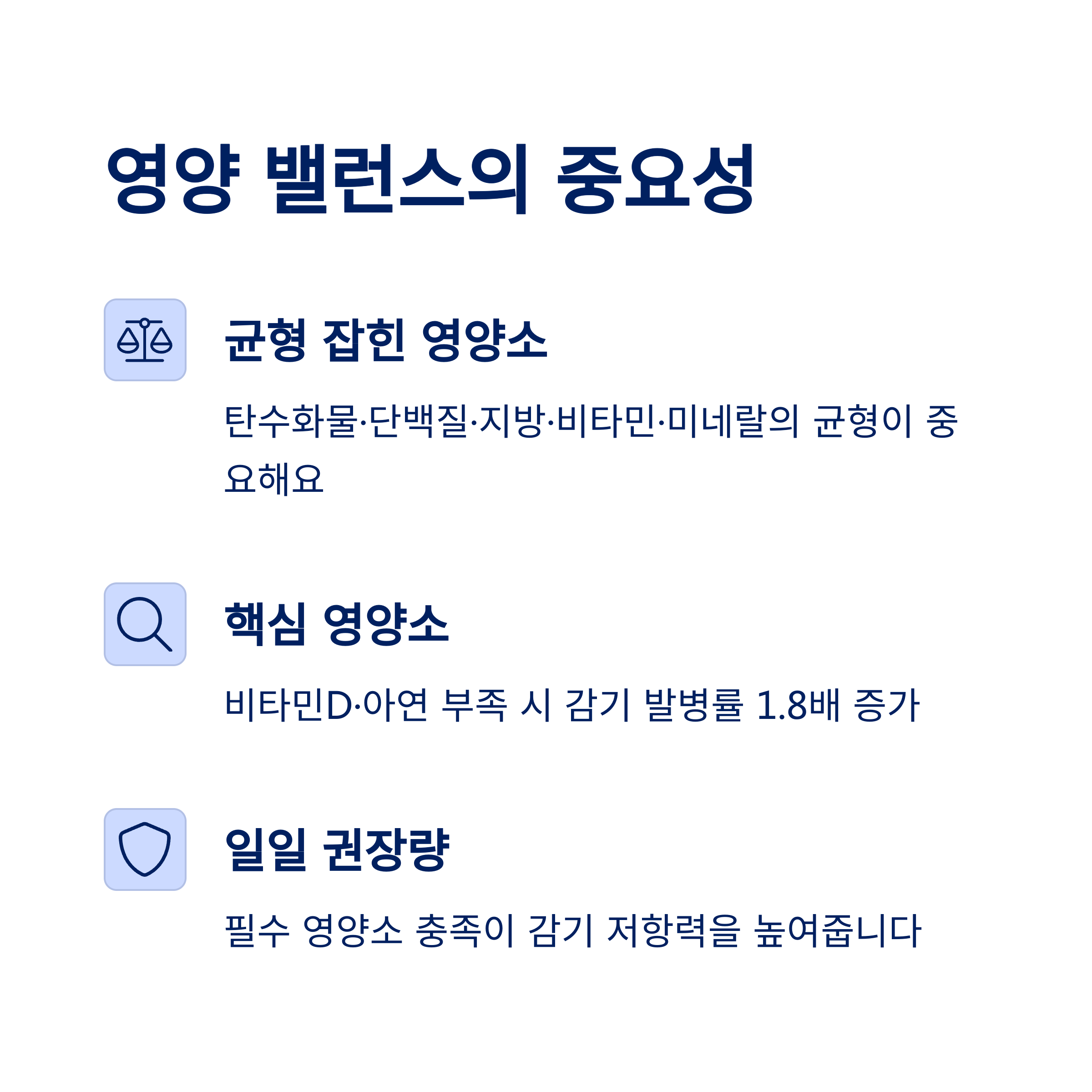 "균형 잡힌 식사는 감기 예방의 첫걸음이에요"