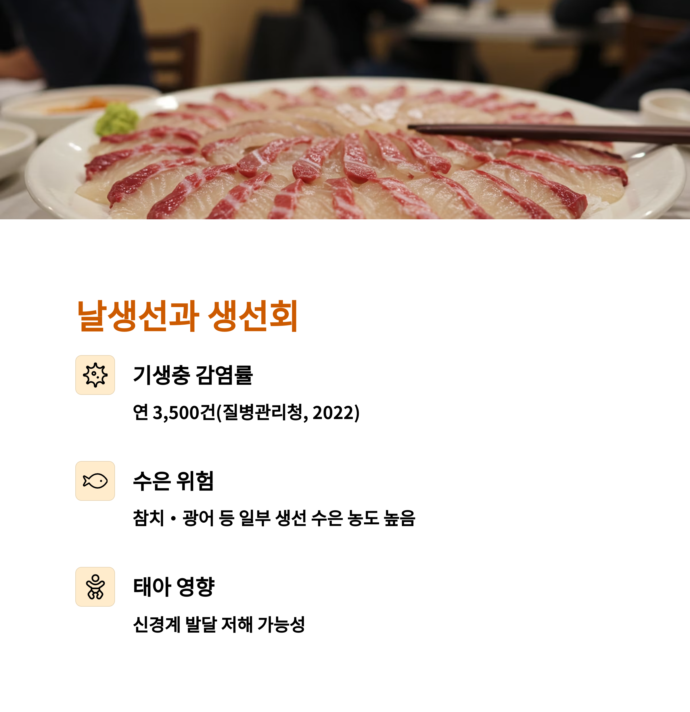 "임신 중에는 한 점의 생선회도 과할 수 있어요"