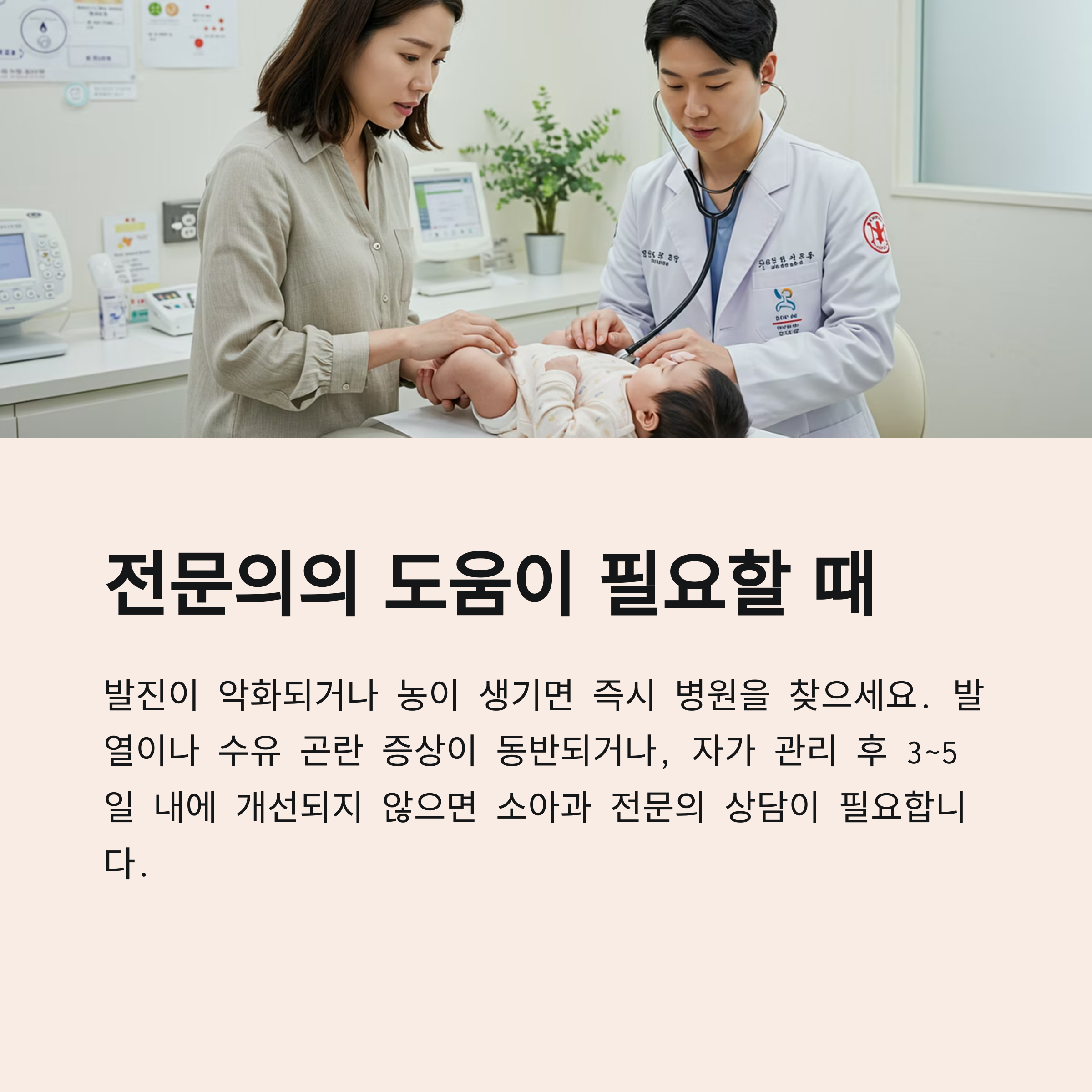 다음과 같은 경우 소아청소년과나 피부과 진료가 필요합니다: