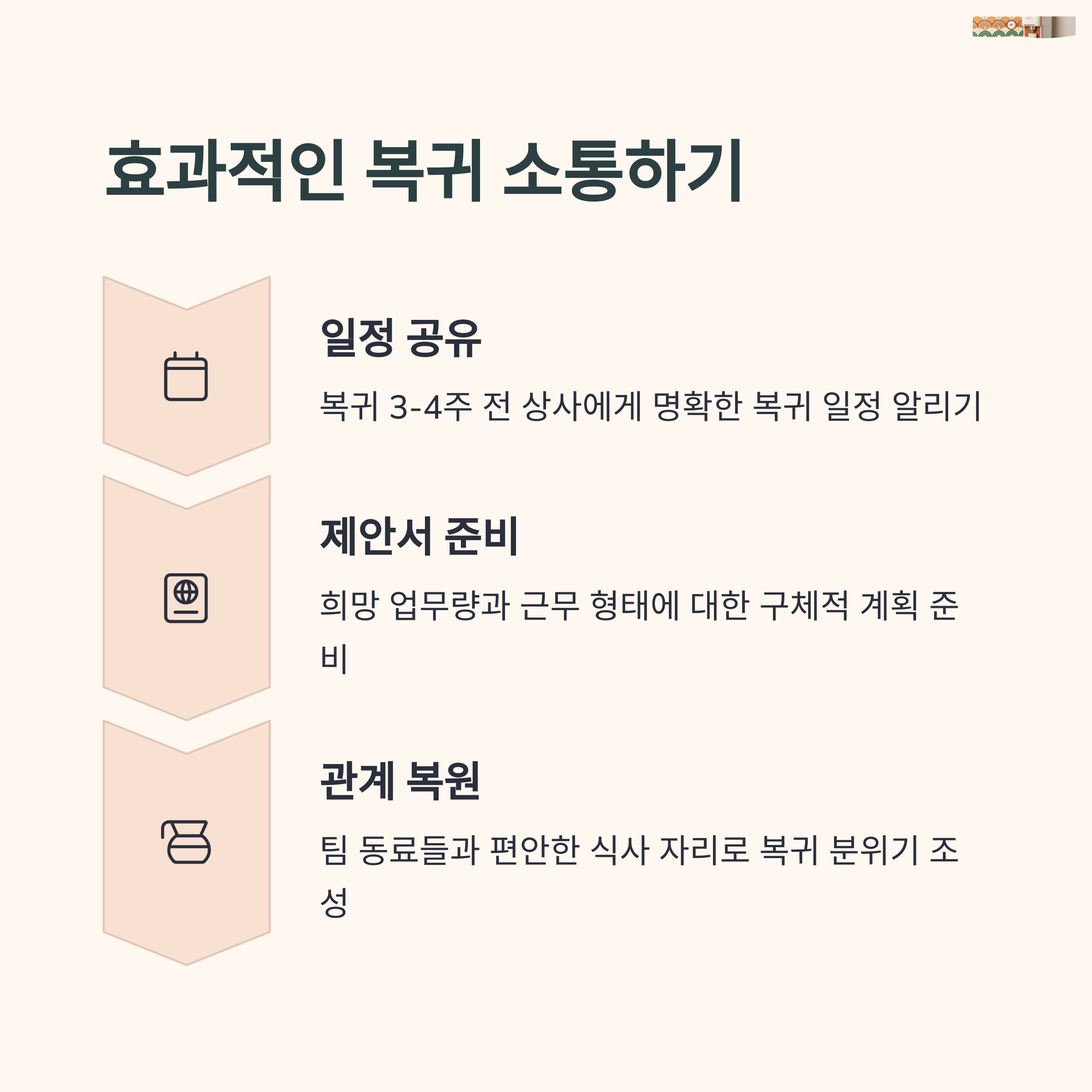 함께 일할 동료들도 미리 준비할 수 있어 복귀 후 어색함을 줄일 수 있습니다.