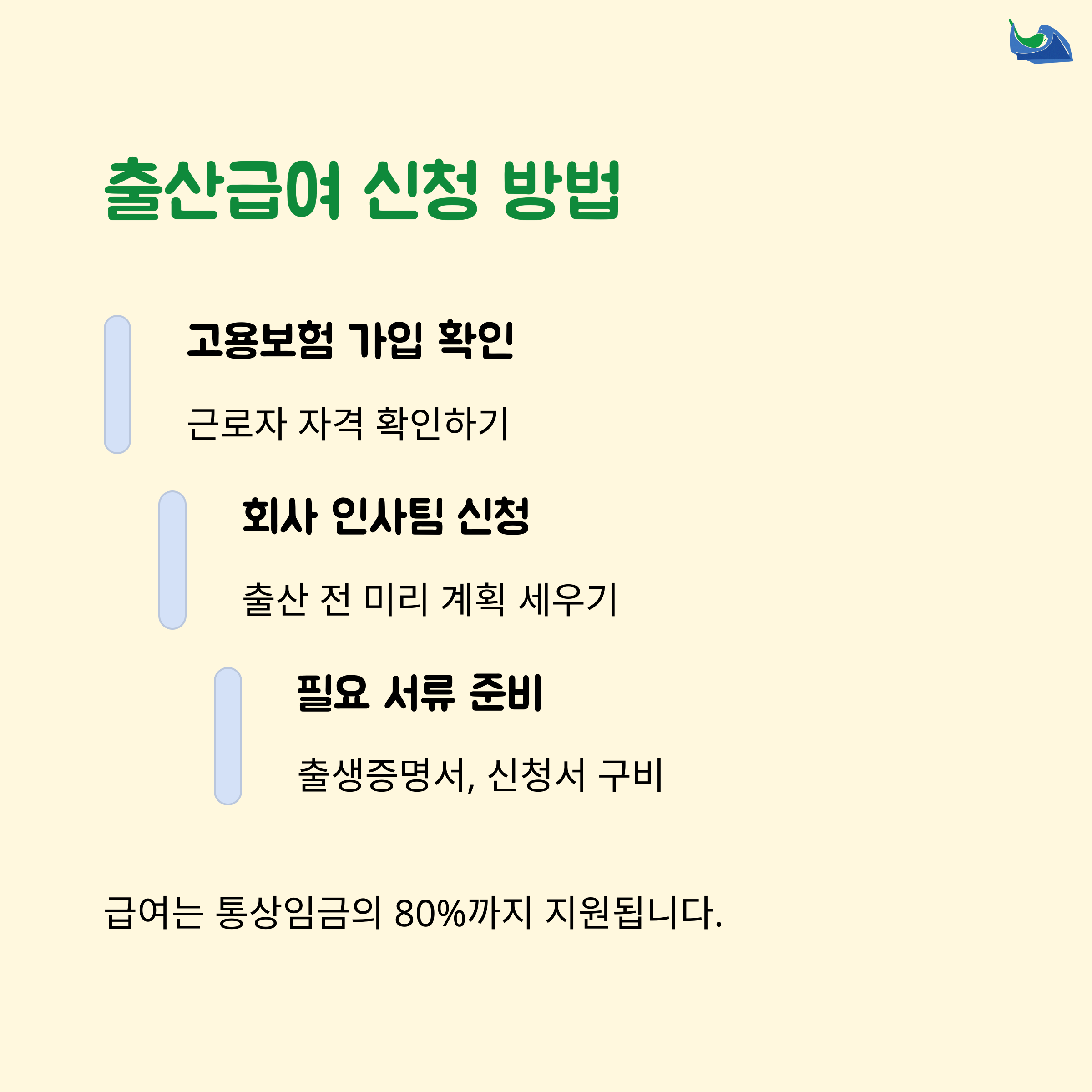 | 출산휴가 기간 | 신청 방법 | 급여 지원 |