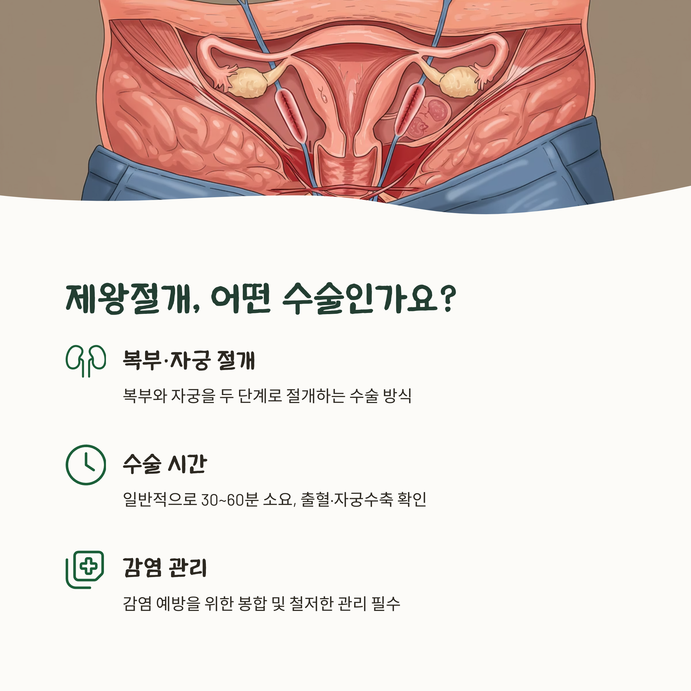 제왕절개는 배와 자궁을 절개하여 아기를 분만하는 수술입니다.