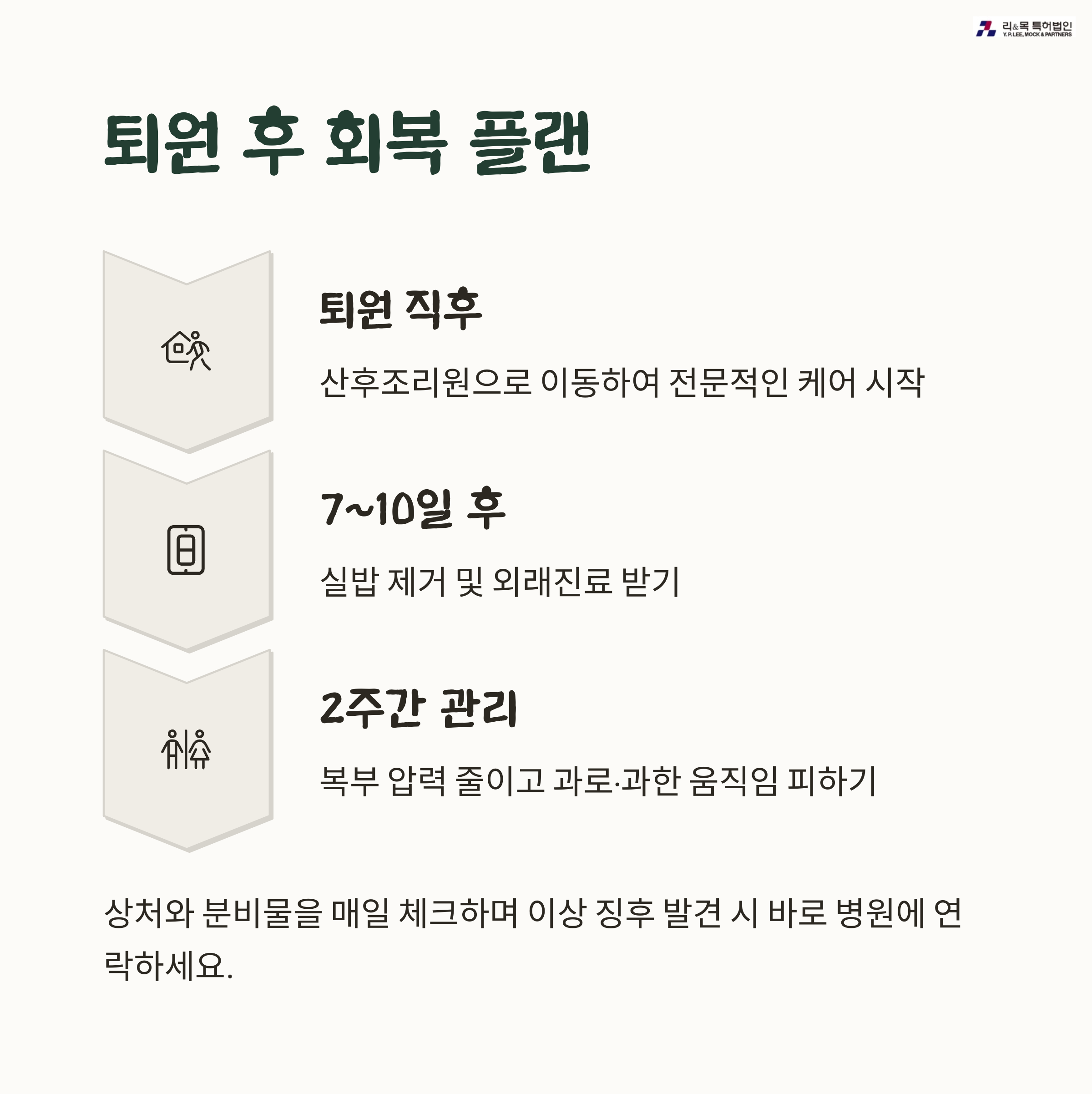 하지만 육아, 직장 복귀, 외출 등은 회복 상태와 개인 체력에 따라 달라집니다.
