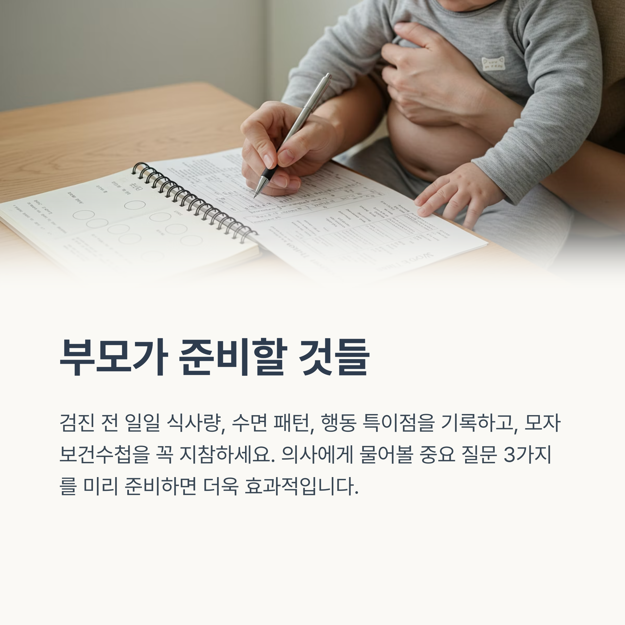 - 아이의 최근 식습관, 수면 패턴, 걱정되는 행동 정리