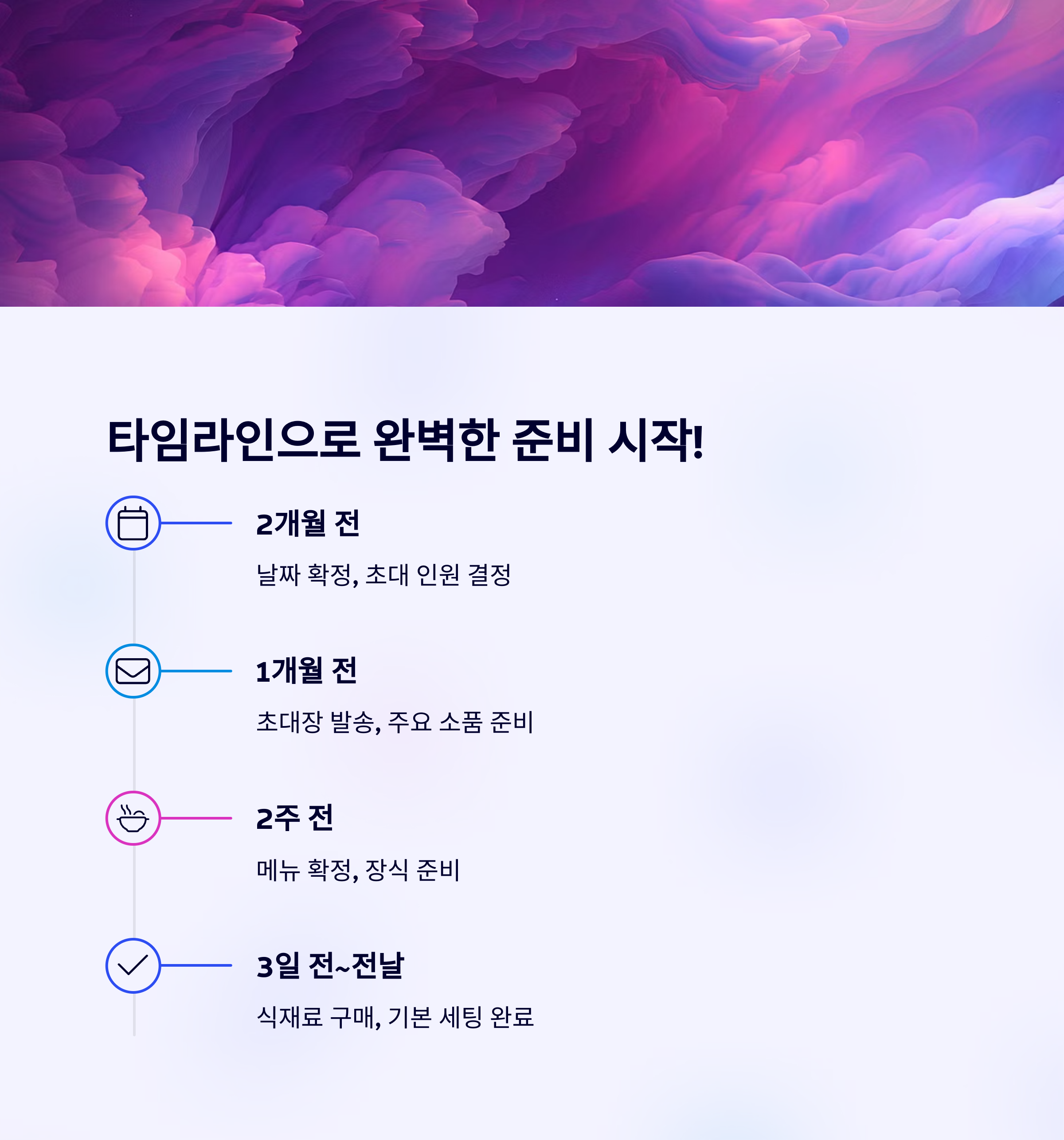 최소 3주 전부터 준비 일정을 나누는 것이 중요합니다.