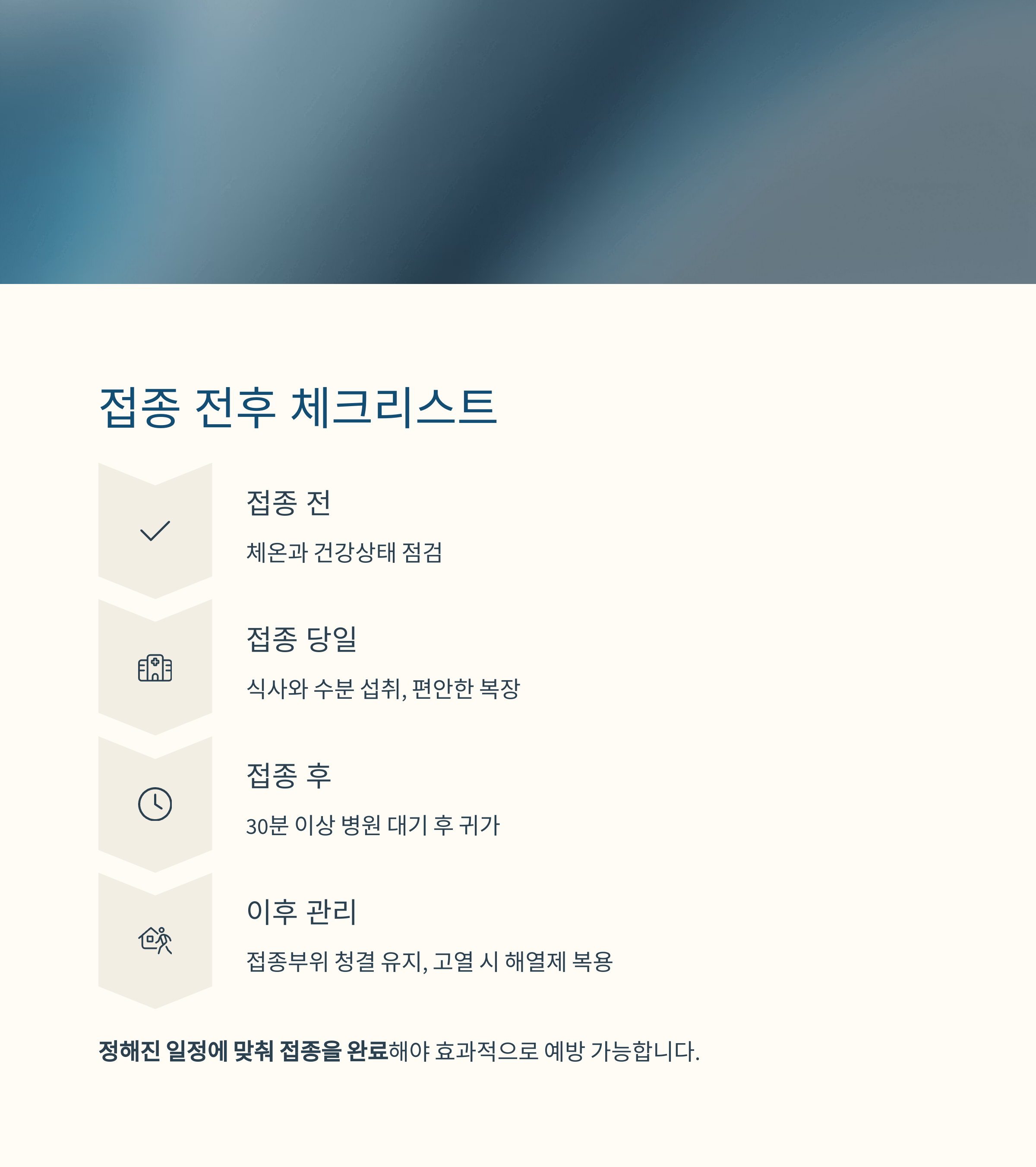 | 접종 당일 | 식사와 수분 섭취, 편안한 복장 |