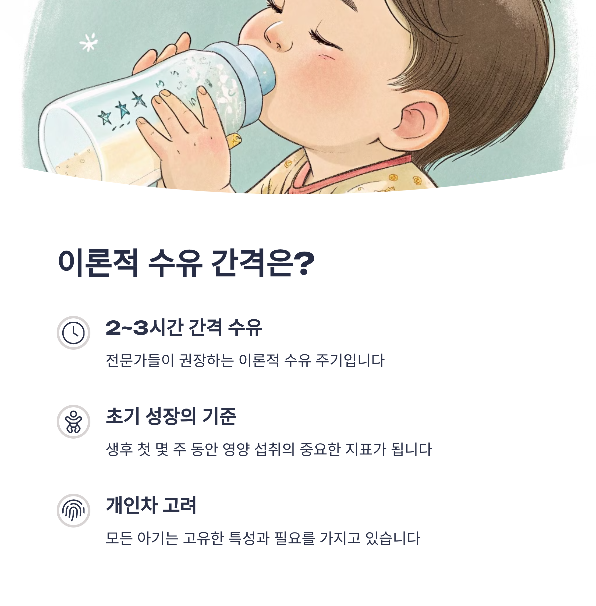 | 신생아 수유 기준 | 평균 2~3시간 간격이 권장됩니다. |