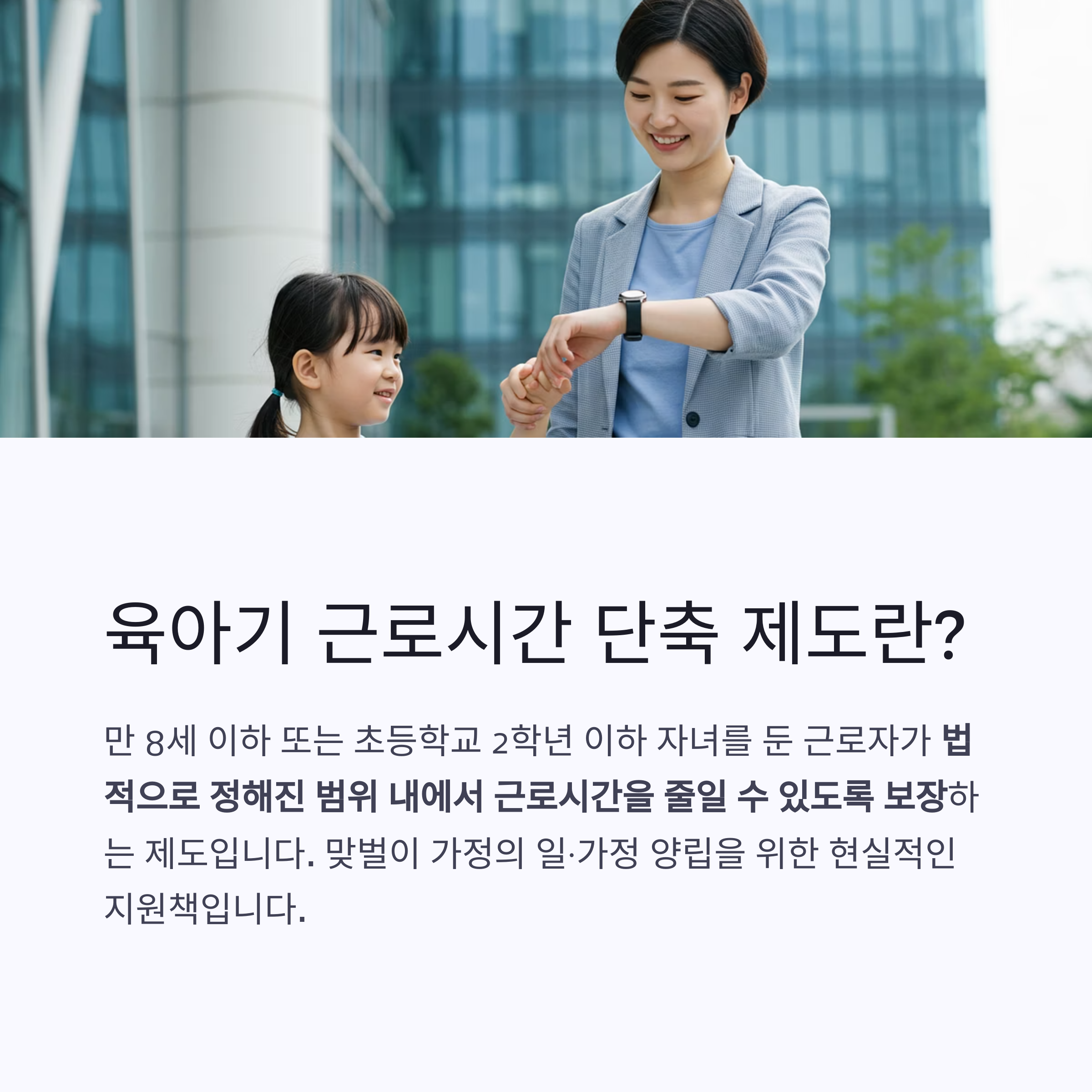 육아를 위해 하루 근로시간을 15~30시간 범위 내에서 줄이는 제도입니다.