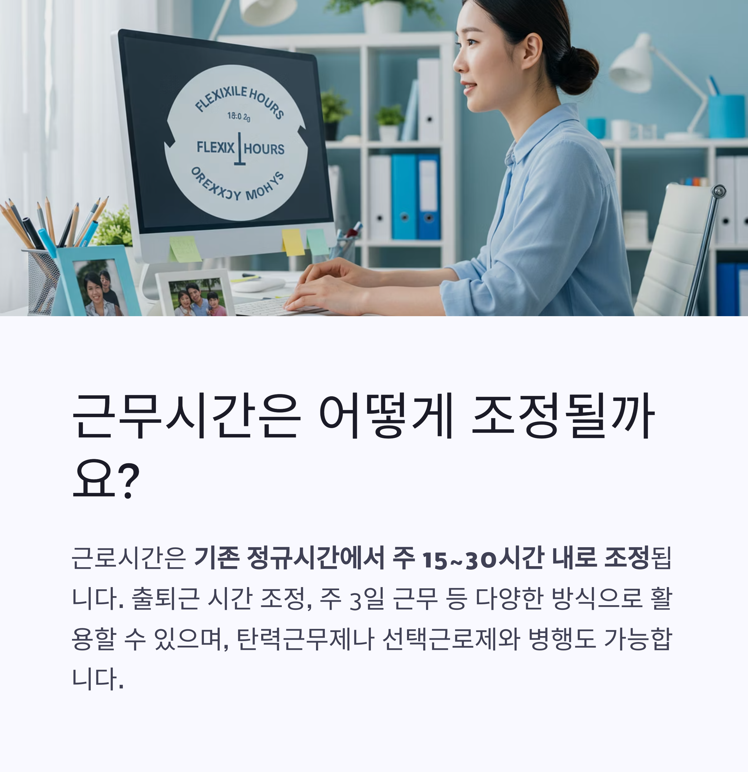 출퇴근 시간을 조정하거나 주 3일 근무 등 다양한 방식으로 활용할 수 있습니다.