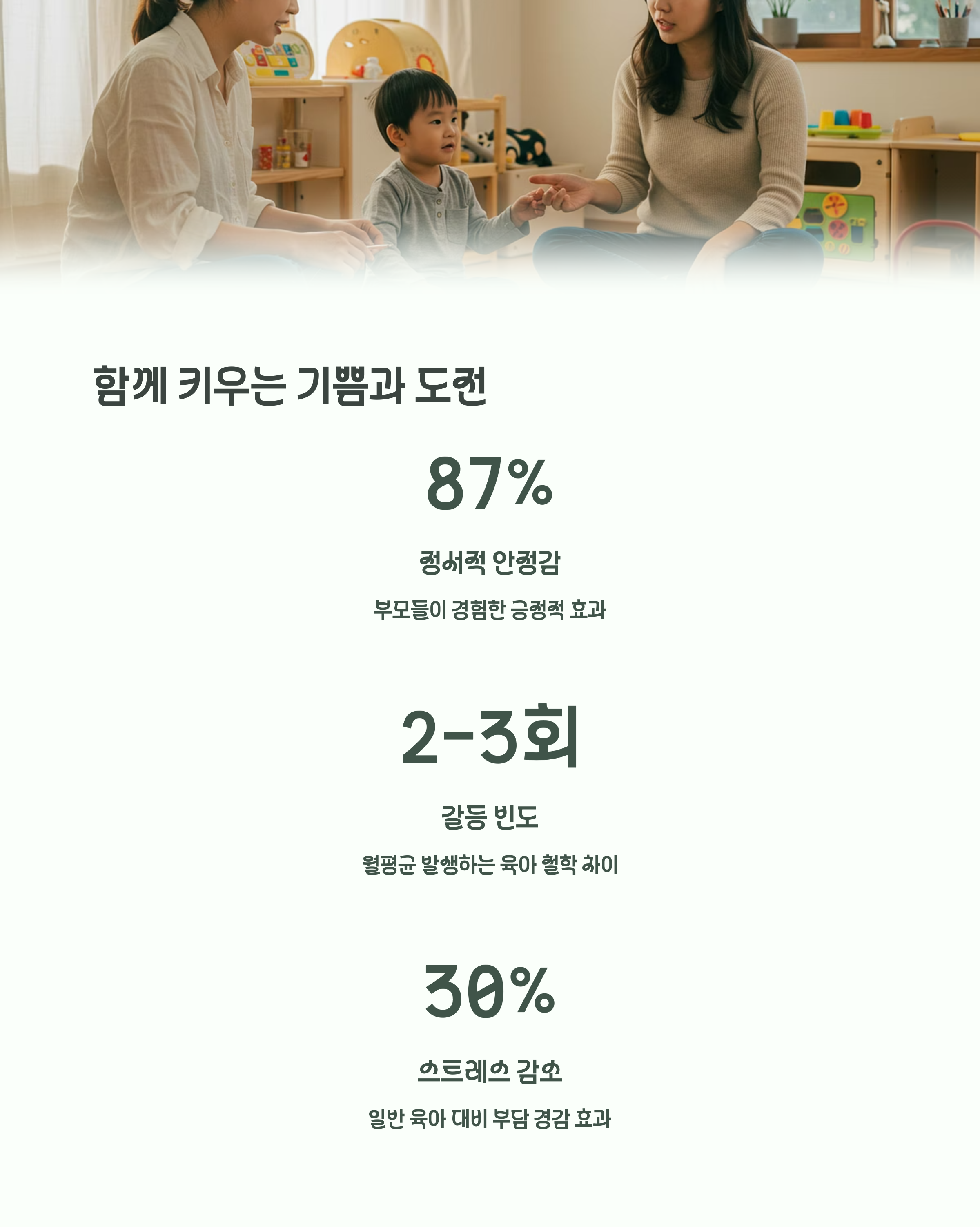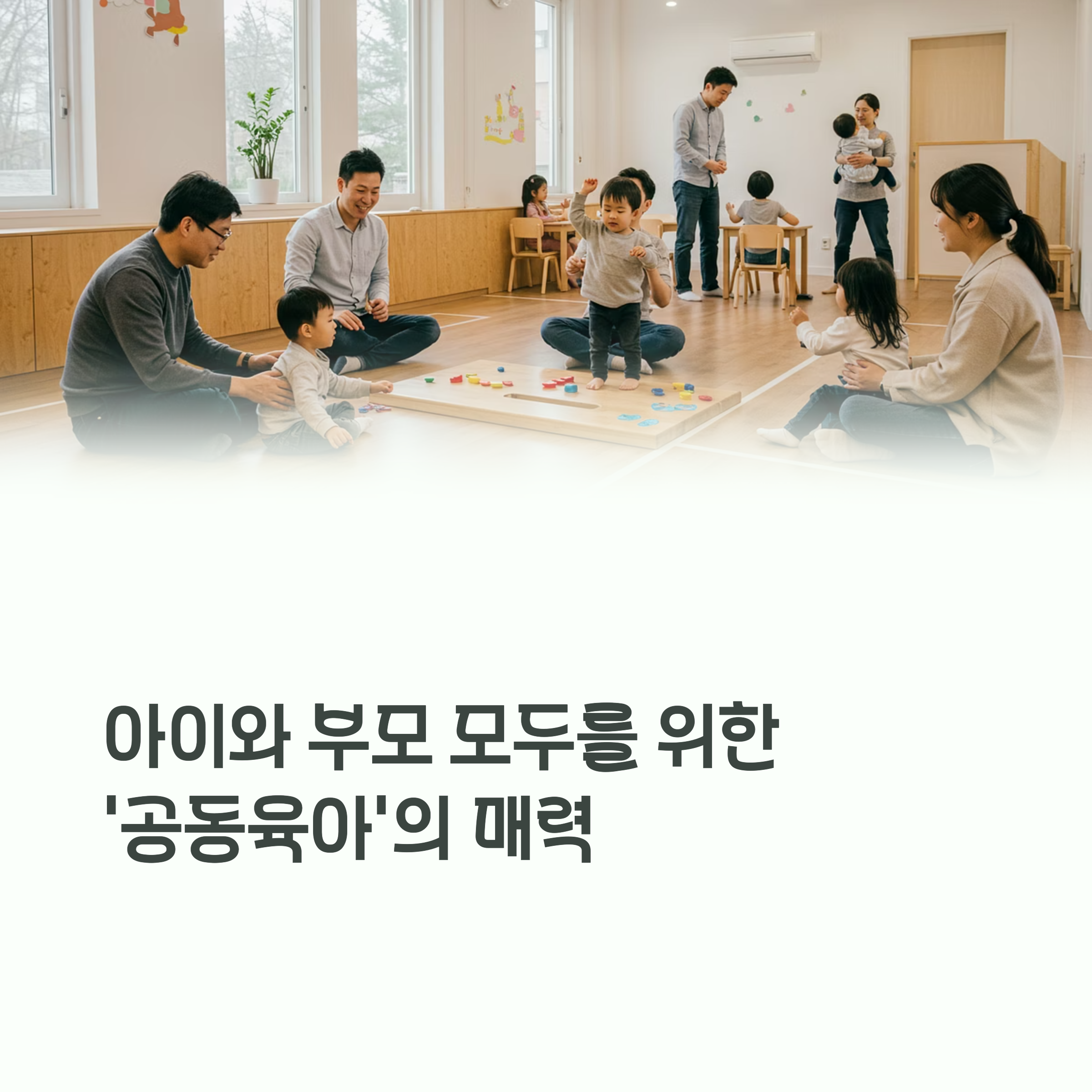 | 왜 공동육아를 선택할까? | 양육 부담 분담, 사회성 발달 등 다양한 이유 때문입니다. |