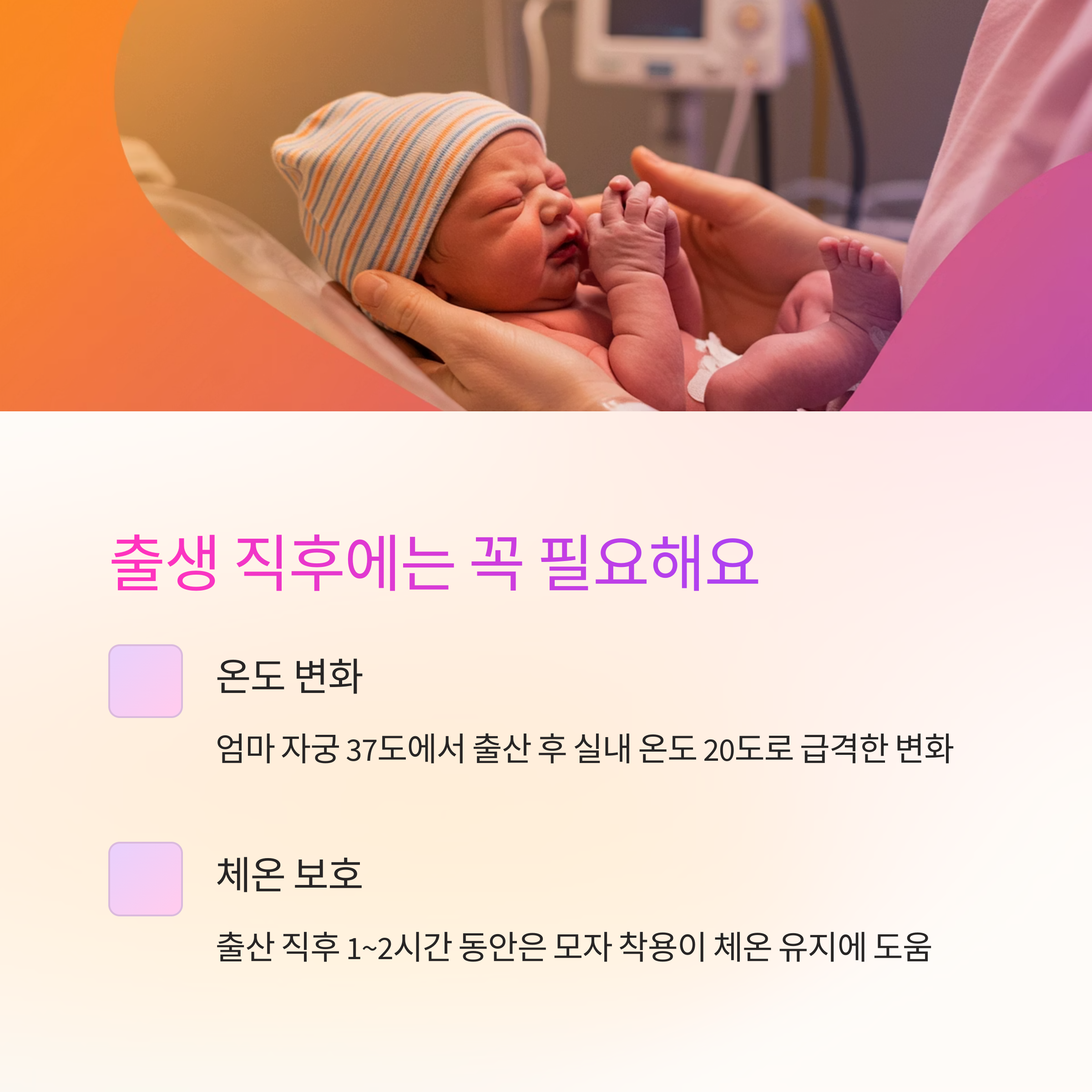 신생아는 태어난 직후 급격한 온도 변화에 노출됩니다.