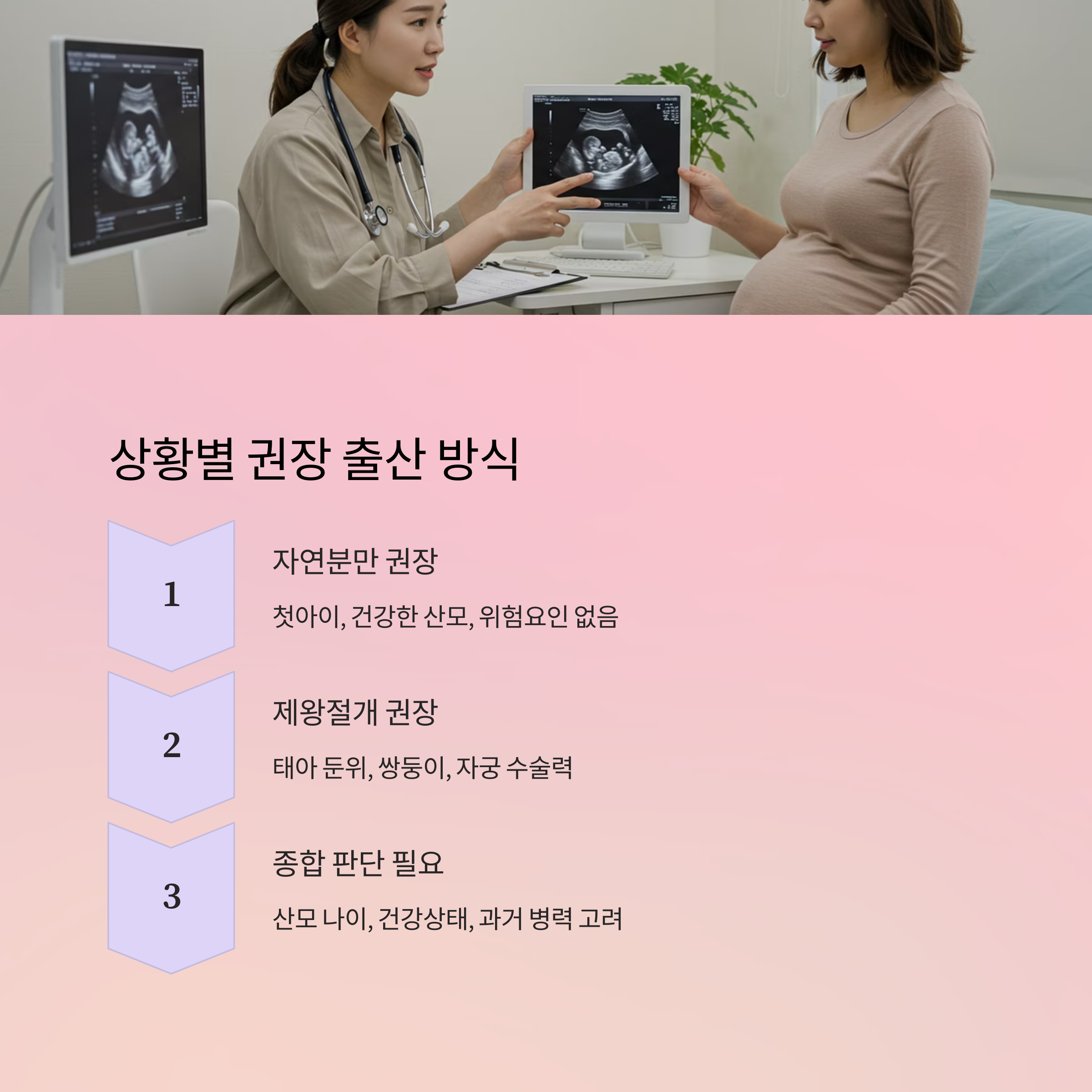 산모의 건강 상태, 아기의 위치, 병력 등에 따라